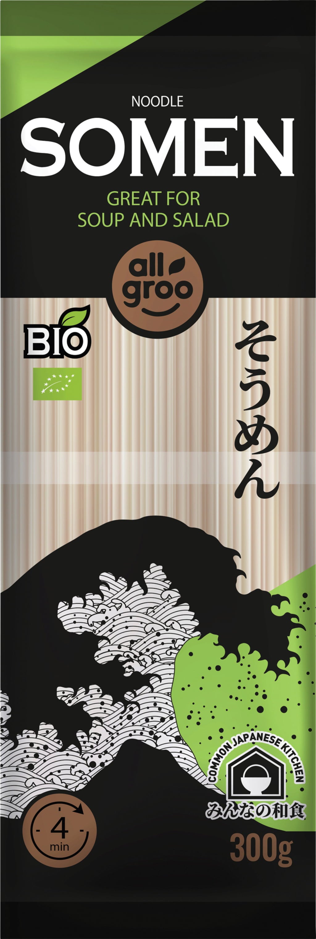 The tender organic Somen noodles made from wheat flour by allgroo are ideal as a side dish or in Asian soups. They have a short cooking time, making them perfect for quick and delicious meals.