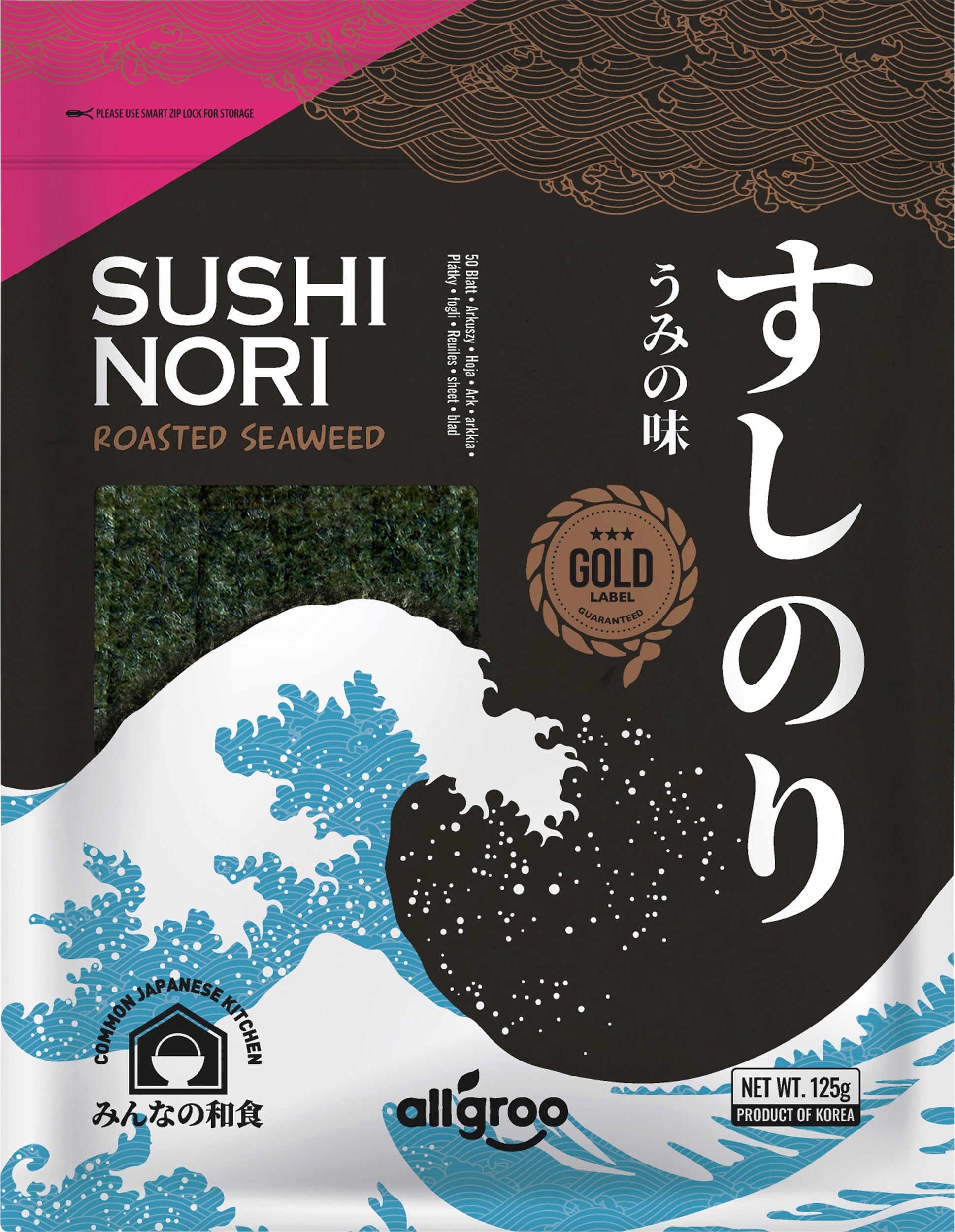 allgroo Sushi Nori Roasted Seaweed, Whole Sheets, 125 g