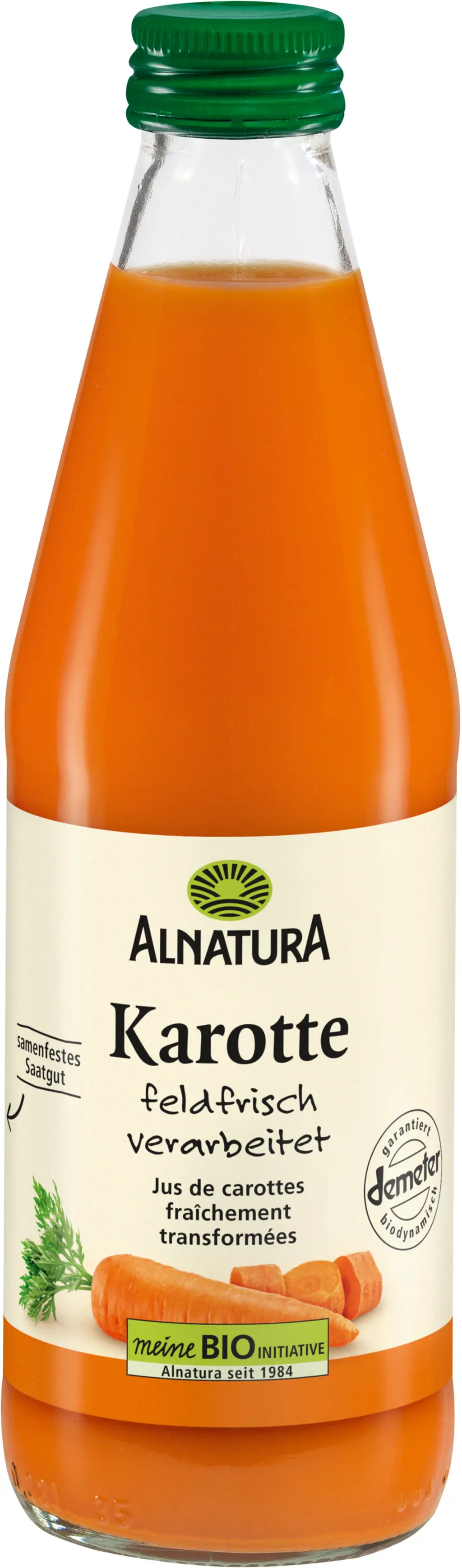 Alnatura brings you delicious and pure organic carrot juice made from vegetables grown by Demeter farmers in Germany. The juice is made from freshly harvested carrots and refined with a splash of lemon juice - and nothing else! Enjoy the harvest-fresh taste either pure or mixed. After opening, close the glass bottle tightly with the cap and refrigerate. It stays fresh and aromatic for up to 5 days.