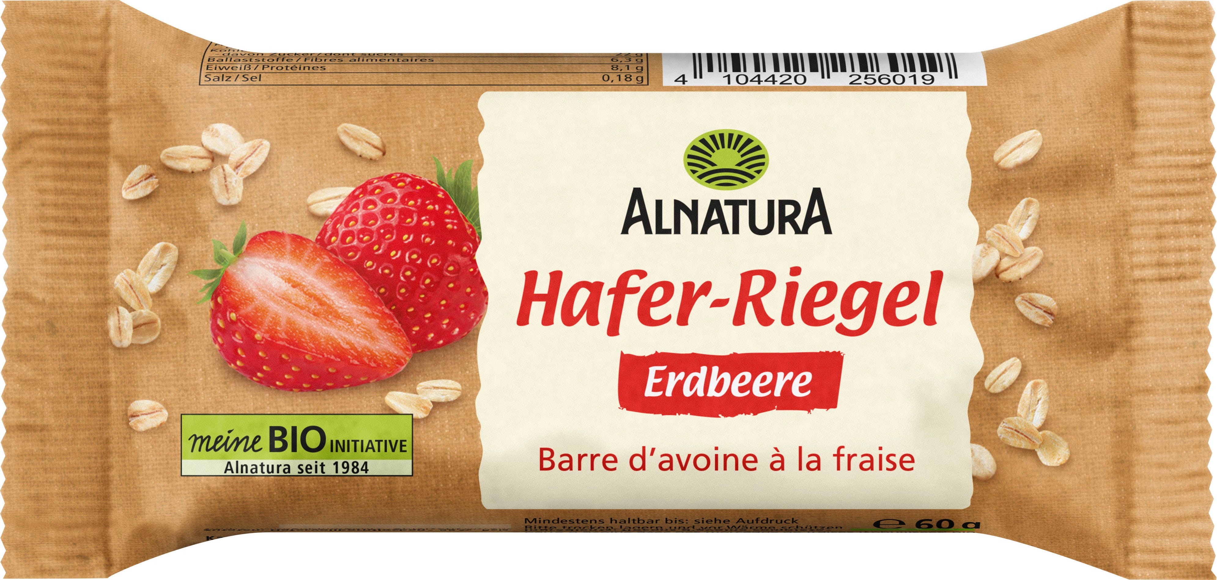 The vegan Alnatura Organic Oat Bar Strawberry, made with a simple recipe based on wholegrain oat flakes refined with strawberries, is an ideal snack for sport, the office or in between meals. Freeze dried strawberry pieces add a pleasantly fruity finish.