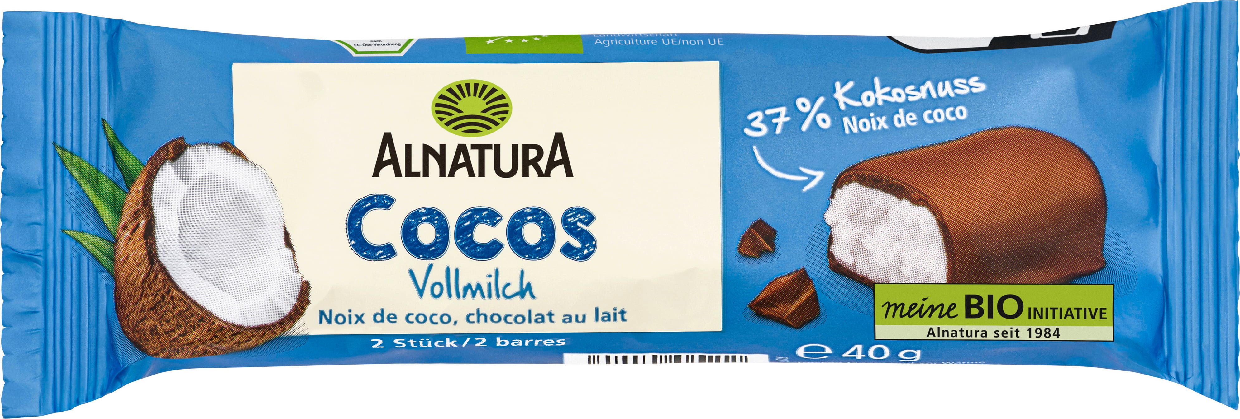 Alnatura Organic Coconut Bar with Milk Chocolate, 40 g