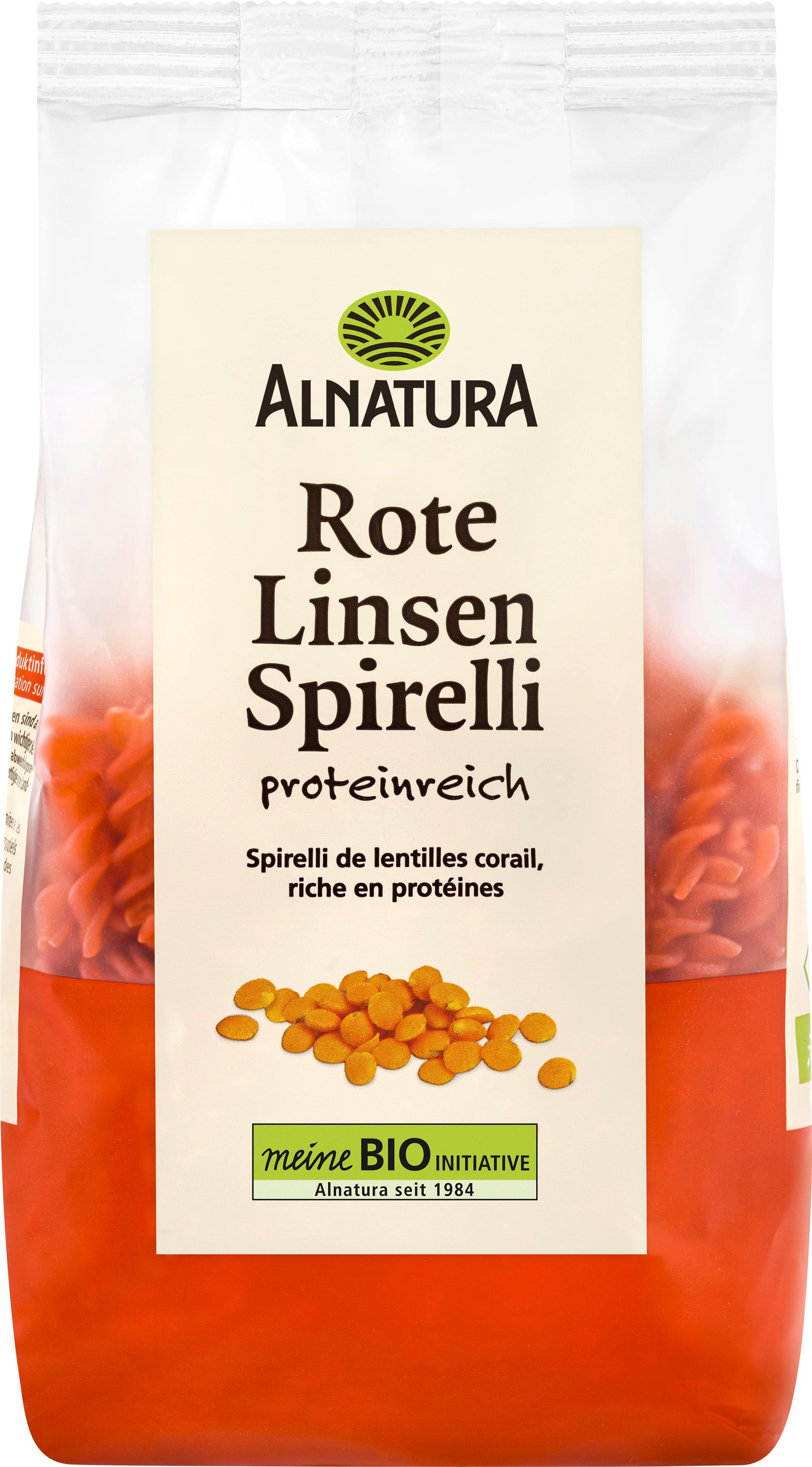 Organic Red Lentil Spirelli by Alnatura are made from red lentil flour. This pasta is versatile and can be enjoyed in salads, stews or as a side dish.