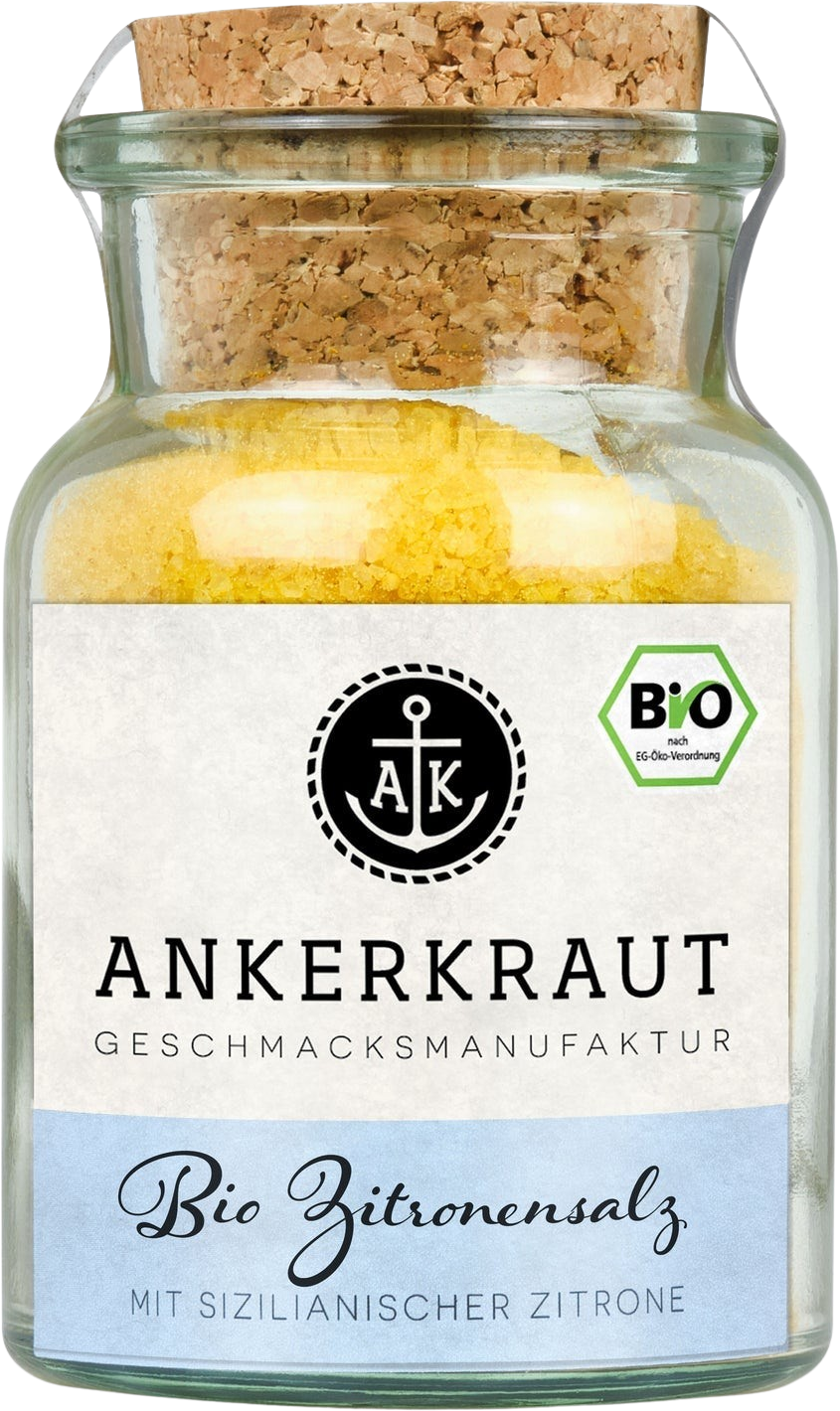 Organic Lemon Salt is a versatile genius and can be used to add pep to a wide variety of dishes, both sweet and savoury. This ingenious combo can be used to add the final touch to fish, seafood and vegetables. The salty and tangy seasoning adds exciting flavours to cookie dough, fresh cheese and salad dressings too. Ankerkraut's Organic Lemon Salt includes sea salt and lemon oil what a touch of turmeric. It contains no artificial additives, flavour enhancers, garlic, onions or added sugar.