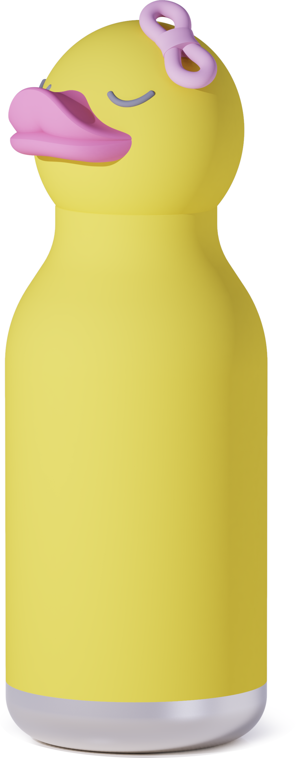 This cute, insulated water bottle with a removable and collectable silicone head in a duck design brings fun and personality to your everyday life. The double vacuum insulation keeps beverages cold for up to 24 hours and makes it the ideal companion for travelling. Made from high-quality stainless steel, the bottle is robust, leak-proof and easy to grip thanks to the soft-touch coating. The integrated silicone straw makes it easy to enjoy drinks wherever you are.