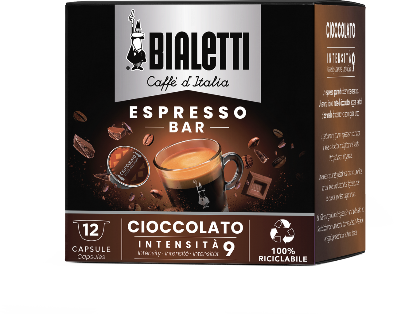 Discover the full-bodied flavour of Bialetti Chocolate Coffee Capsules, a gourmet coffee with a seductive chocolate aroma. The medium roast brings out the roasted notes and delicate flavour of this unique coffee. Perfect for those who love the harmonious combination of coffee and chocolate.