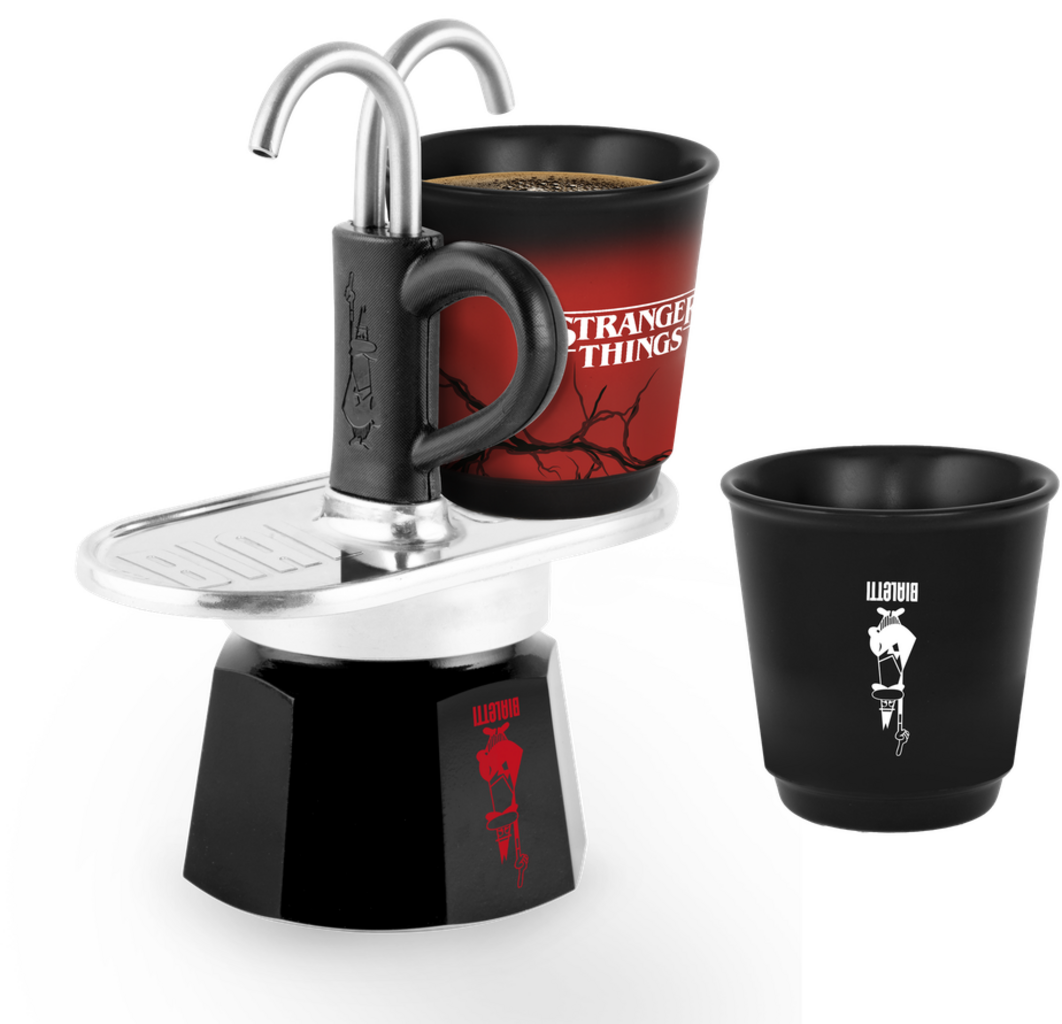 The popular MINI Express espresso maker by Bialetti is now also available in the exclusive "Stranger Things" design. Authentic coffee enjoyment in a practical and compact format: perfect for at home and on the go, e.g. when camping.