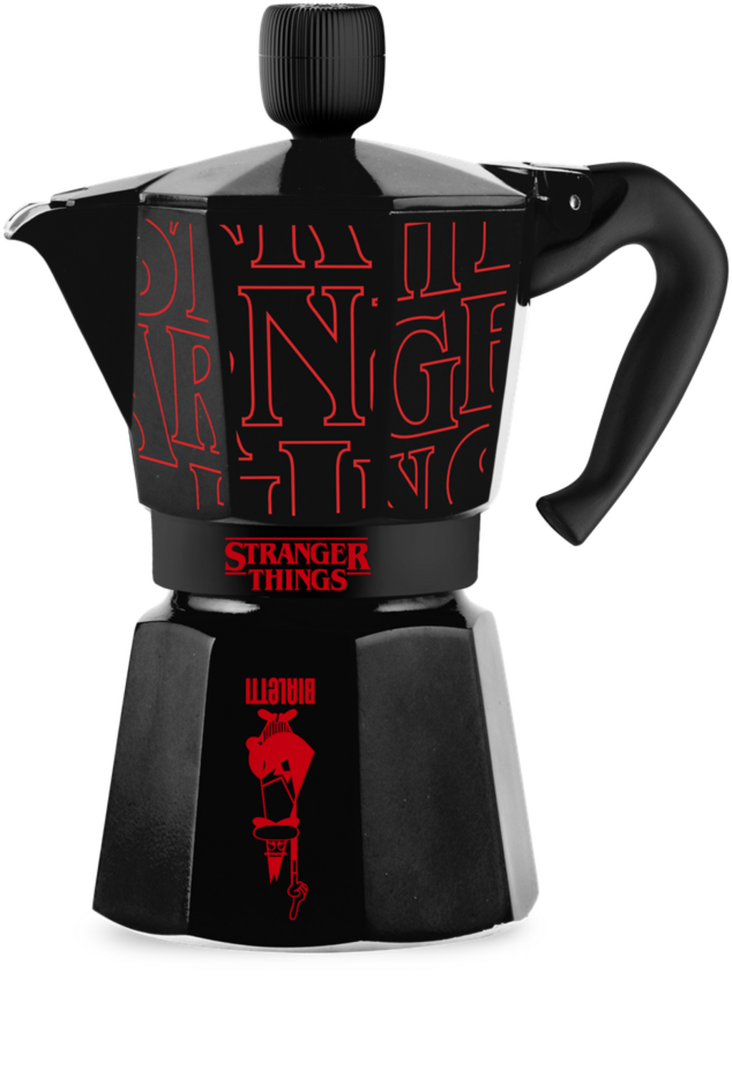 The espresso pot in the cool "Stranger Things" design can do even more: the loudspeaker integrated in the knob of the lid plays the Stranger Things song during the brewing process. An absolute must-have for all fans of the cult series and, of course, makes for a wonderful gift.