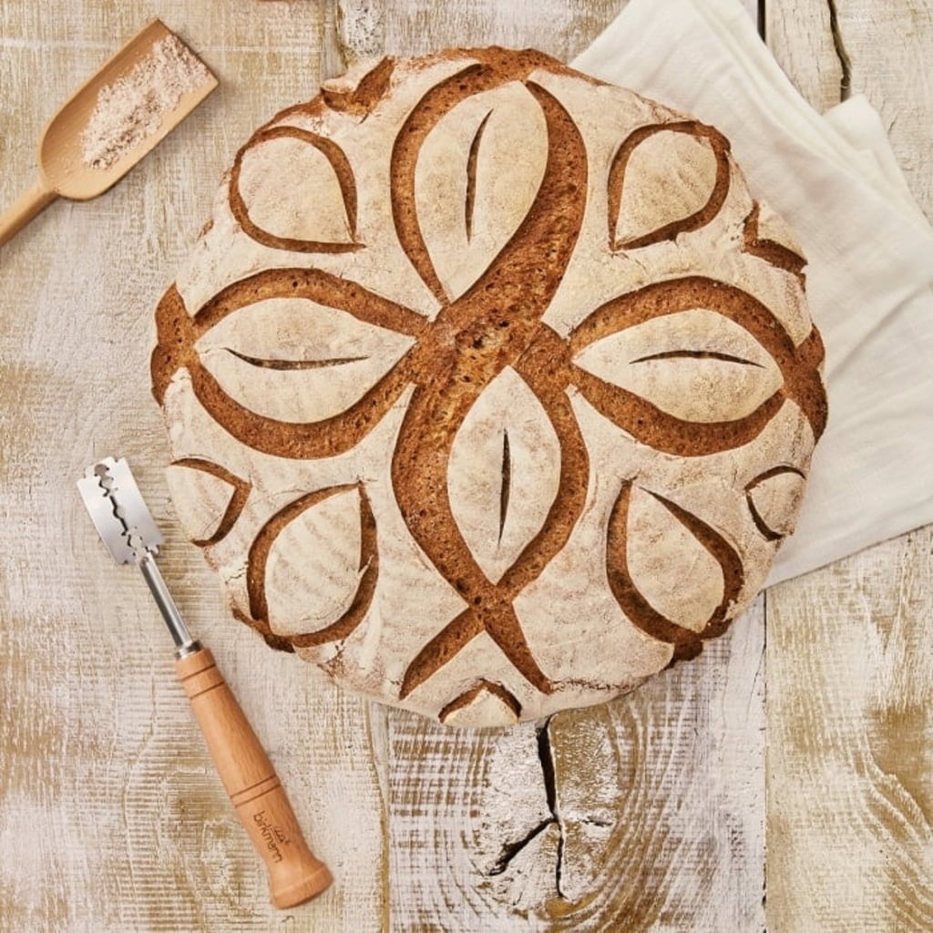 The baker’s knife by Birkmann allows you to create artistic, decorative patterns on homemade bread loaves with ease. The ergonomically shaped beechwood handle sits securely and comfortably in the hand, enabling precise work.