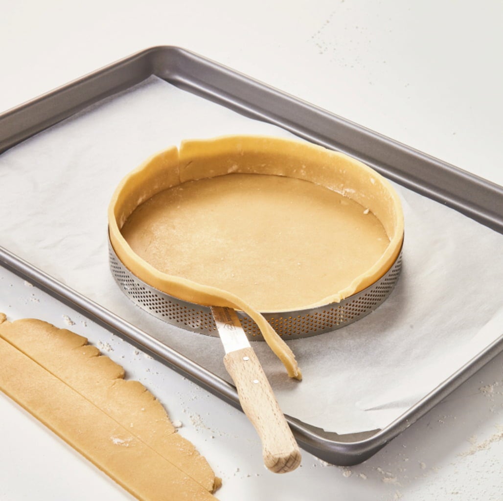 This high-quality cake ring, made from premium stainless steel, creates evenly baked tarts, quiches and cake bases with professional-looking results. The practical perforations ensures optimal air circulation for perfectly baked pastry all round.