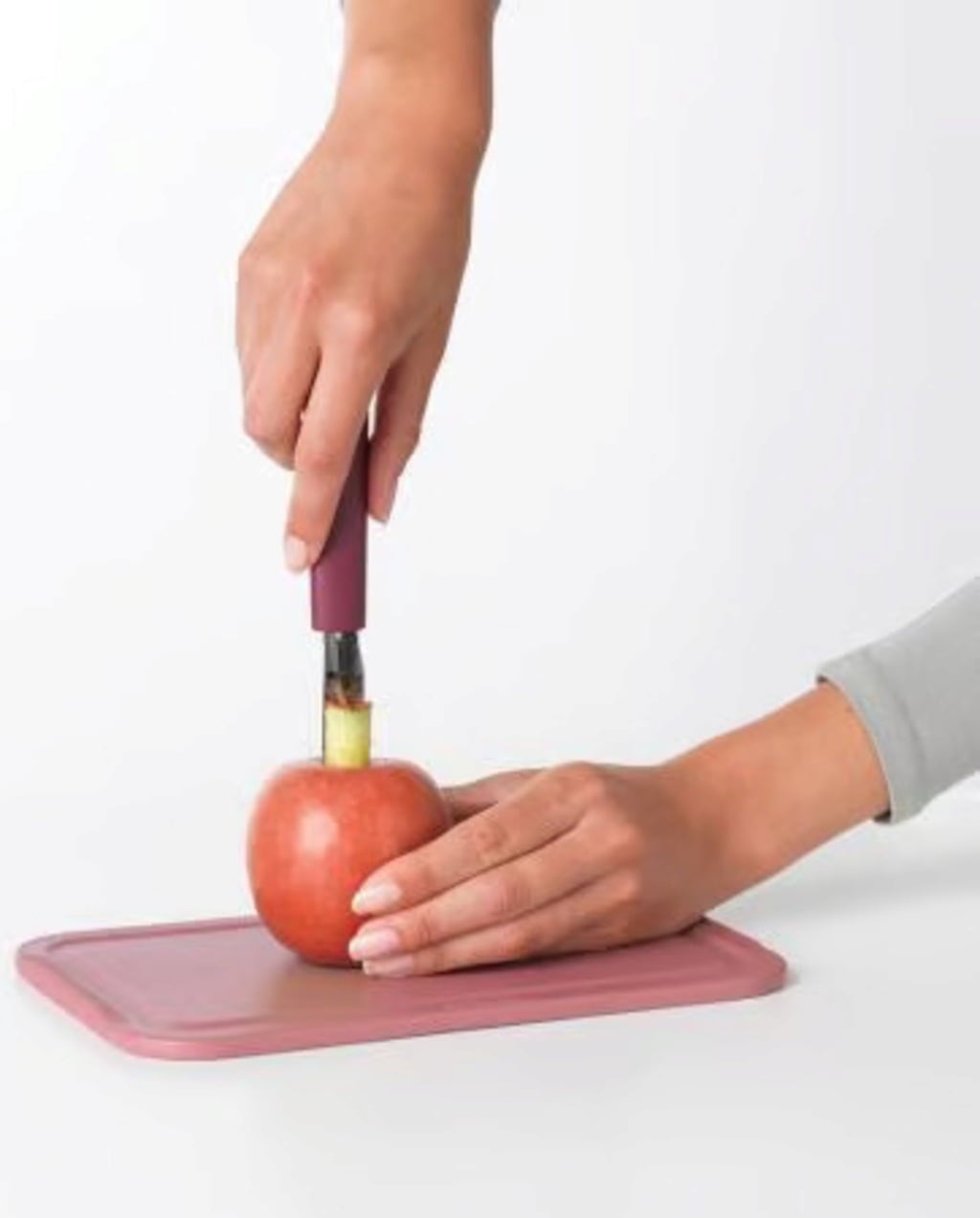 This clever kitchen tool makes removing the core from apples, pears , etc. easier and quicker – all in one smooth motion. The serrated stainless-steel blade delivers clean cuts, while the ergonomic design ensures comfortable handling. Whether you're prepping fruit for snacks, prepping them for baking or salads, this corer is an essential tool for anyone who loves fresh fruit and wants to save time on prepping fruit.