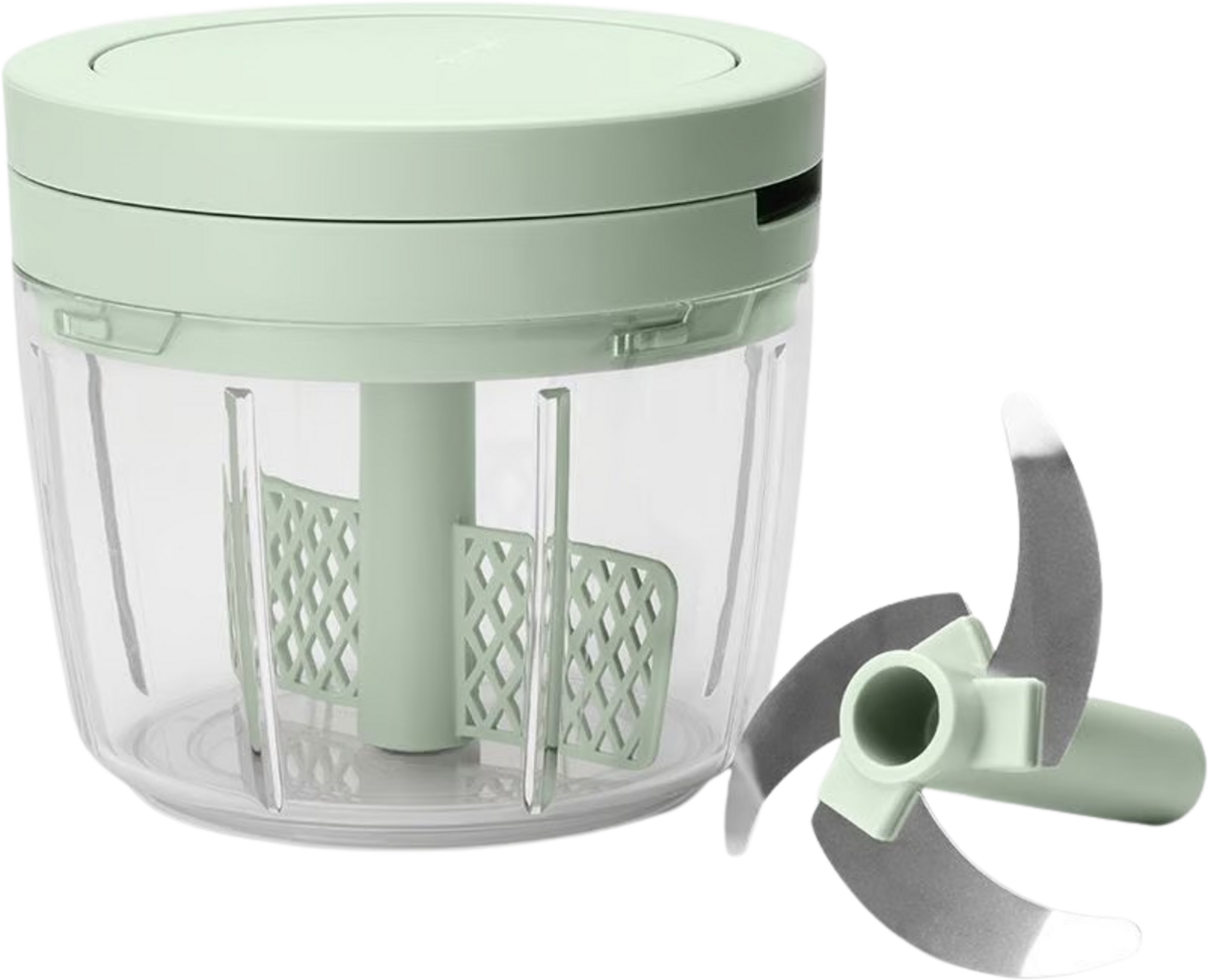 Save time and effort in the kitchen with this versatile multi-chopper! Whether you're dicing onions, chopping carrots or crushing nuts – the three sharp blades make light work of it all, without the tears. Just pull the clever cord to activate the rotating blades, while the integrated whisk is perfect for mixing sauces or whipping cream. The see-through container lets you keep an eye on your progress. Compact, practical and easy to clean – it's your go-to kitchen helper for a range of everyday meal prep tasks!