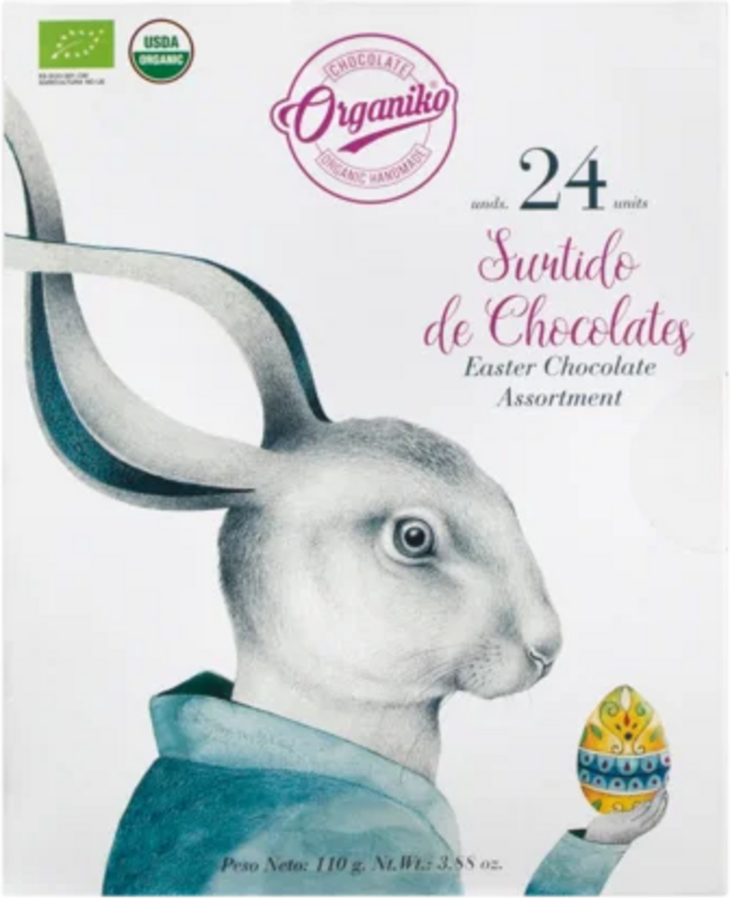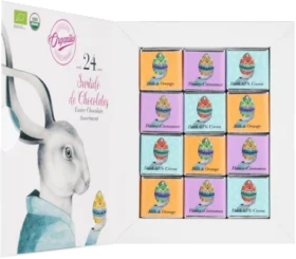 Organic chocolate mix in an Easter box with 24 fine mini bars