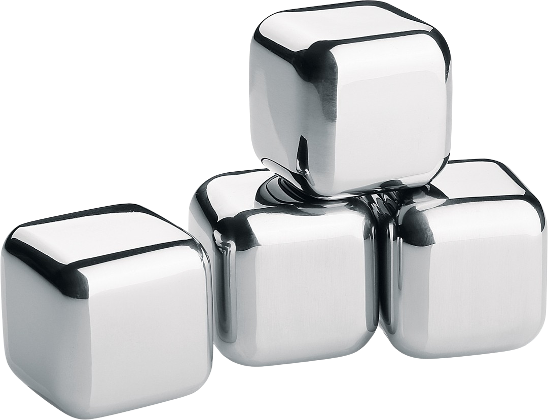 Tip: Store the STEEL Ice Cubes in the box provided and place them in the freezer compartment for at least 3 to 4 hours. Place 1 to 2 cubes in your glass once cooled. Since stainless steel conducts cold very effectively, the beverage will reach the perfect temperature in a short time. After use, rinse the cubes under warm water, dry, and return them to the freezer for future use.