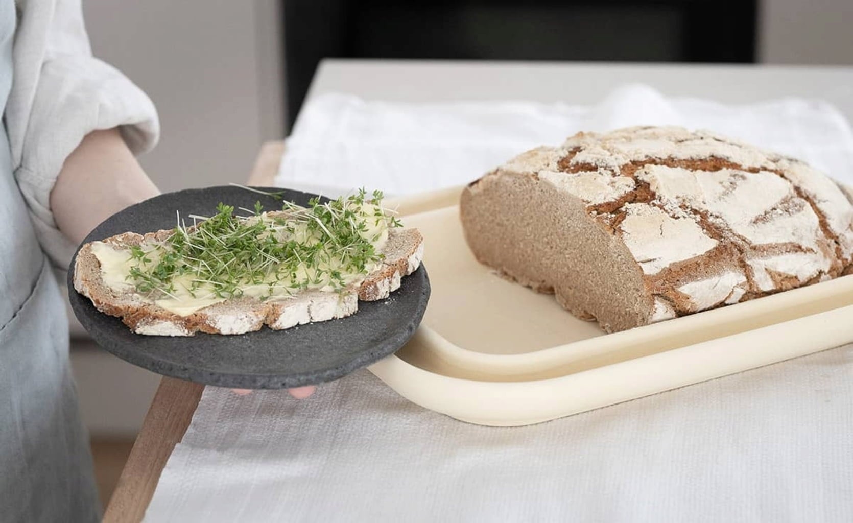 Nothing tastes more delicious than fresh, home-baked bread. In order for this to succeed, it's not just a matter of high-quality ingredients and the right know-how, but also of the right baking utensils. With their patented Bread&Cake XL baking plate, DENK offers ambitious hobby bakers a unique accessory that makes baking bread child's play and ensures all-round crispy next-level baking results without a wood-fired oven. Bread has never tasted so good!