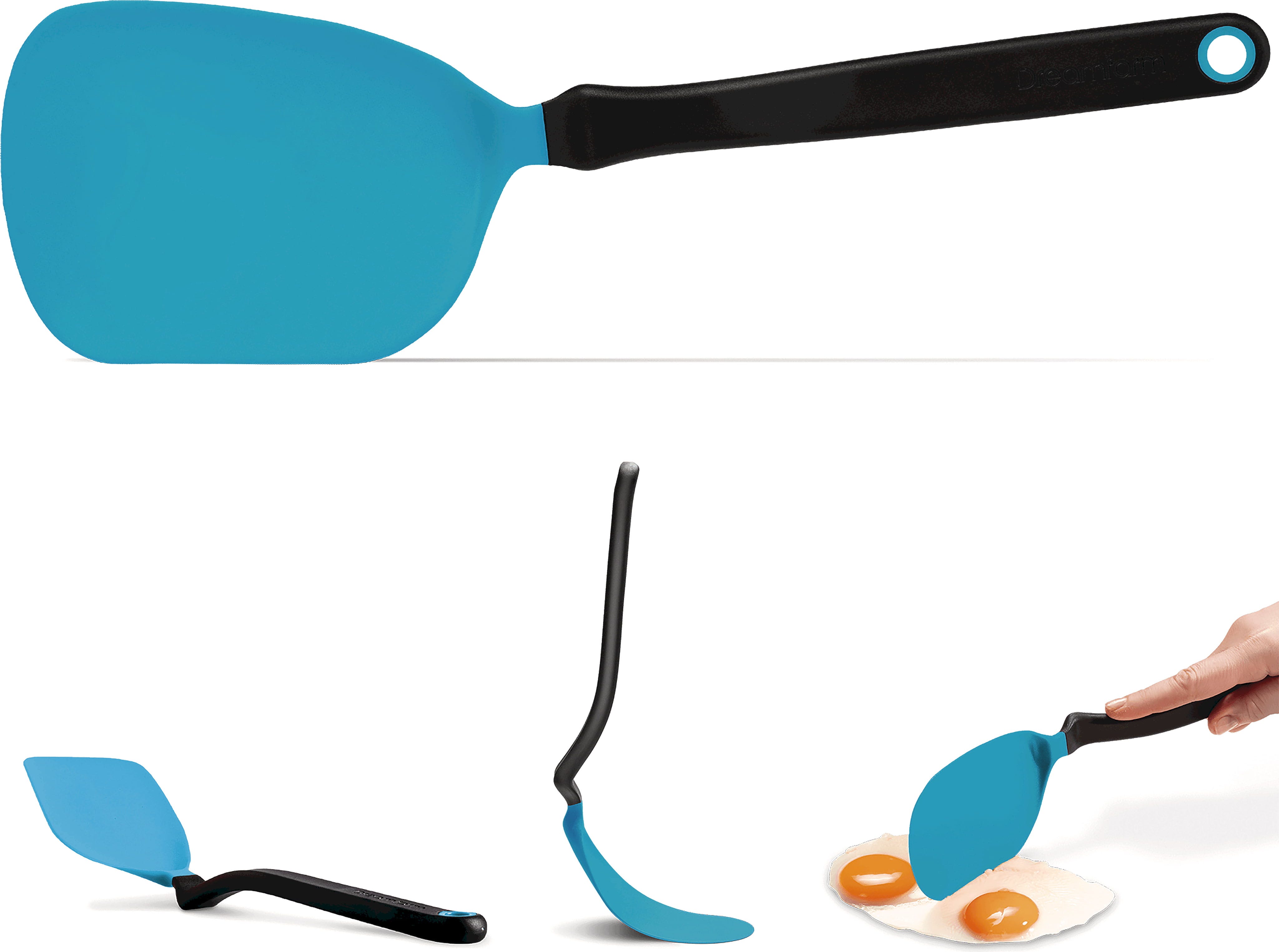 The Chopula Flexible Turner by Dreamfarm is a clever spatula featuring a large, flexible head that slides effortlessly under any food. Its unique shape allows you to reach precisely into every corner of your pans and bowls. Thanks to the signature "sit up" bend in the handle, the head stays elevated off the counter when set down, ensuring maximum cleanliness in your kitchen.