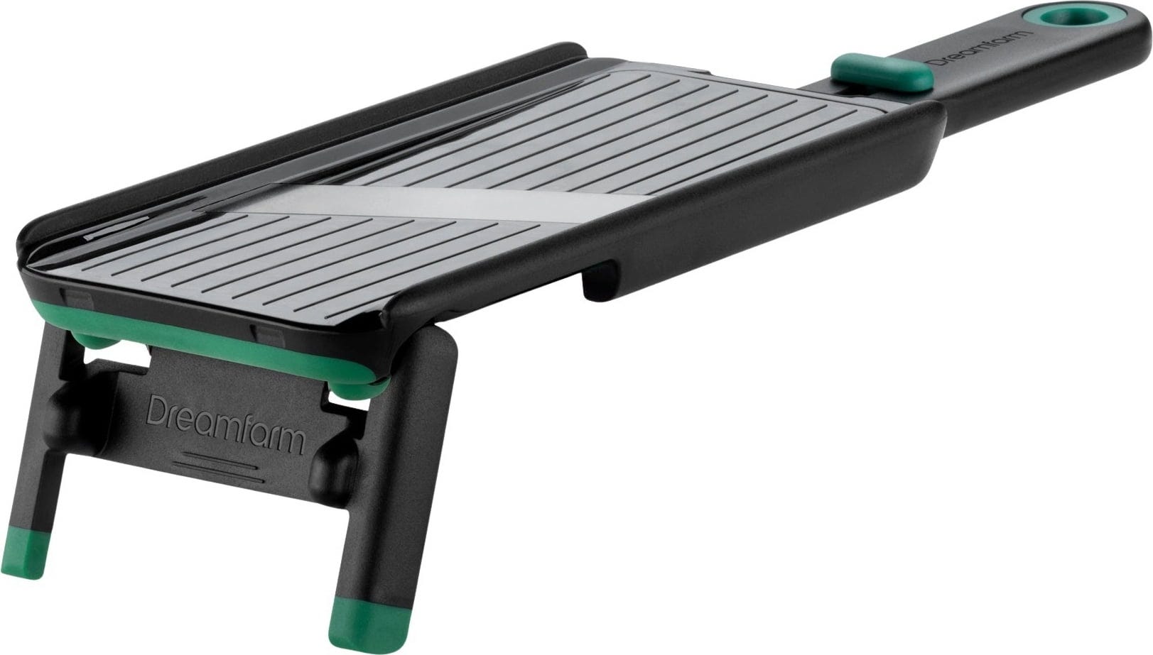 Slicing salad, potatoes, and crisp vegetables into perfect portions is now faster and safer than ever! The Nocutu Mandoline Slicer by Dreamfarm features a razor-sharp stainless steel blade that can be adjusted to your preferred thickness between 1 and 3 mm. To ensure total peace of mind while you work, the set includes a generous, flexible finger guard that reliably protects you from nicks and cuts.
