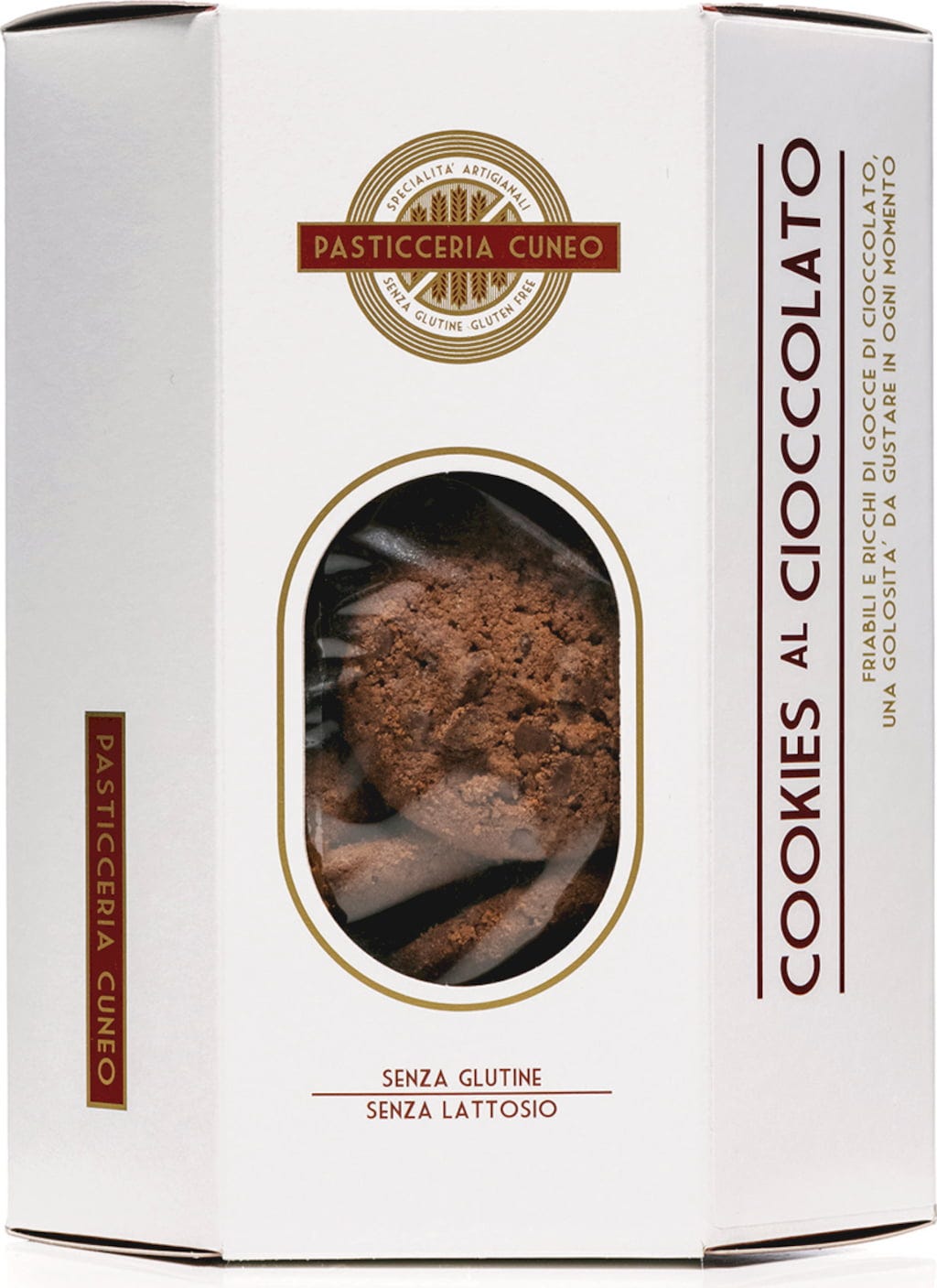 These gluten-free chocolate cookies combine a crumbly dough with fine chocolate drops that add an intense cocoa flavour. Their delicate texture and balanced sweetness make them the perfect treat to enjoy with tea or coffee.
