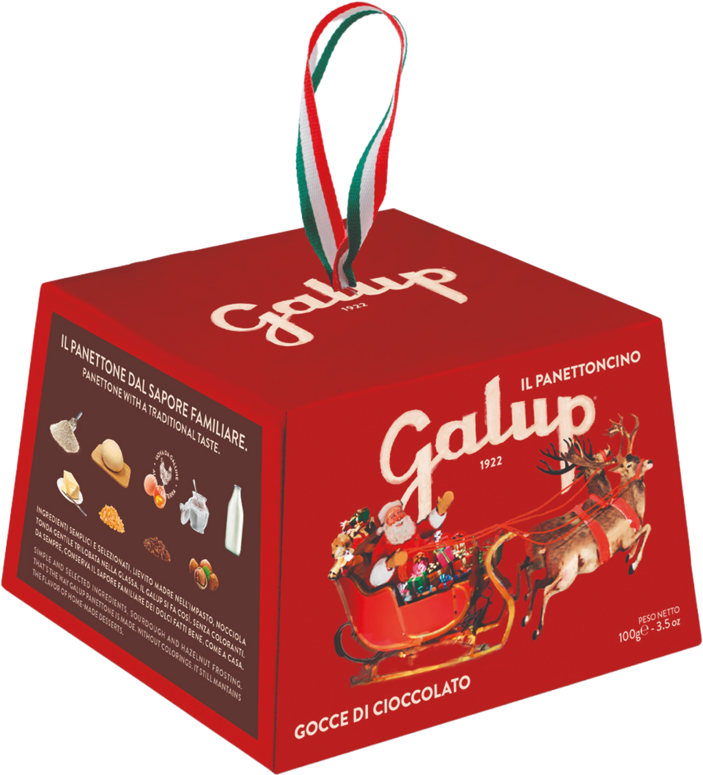 At Galup, every bite is pure delight! This little Panettoncino brings a taste of Italian dolce vita to your festive celebrations. Soft, airy sweet dough studded with dark chocolate drops, finished with Galup’s legendary hazelnut sugar glaze - a masterpiece of Italian pastry craftsmanship. Perfect for sharing, gifting or simply enjoying with your favourite people during the holidays.