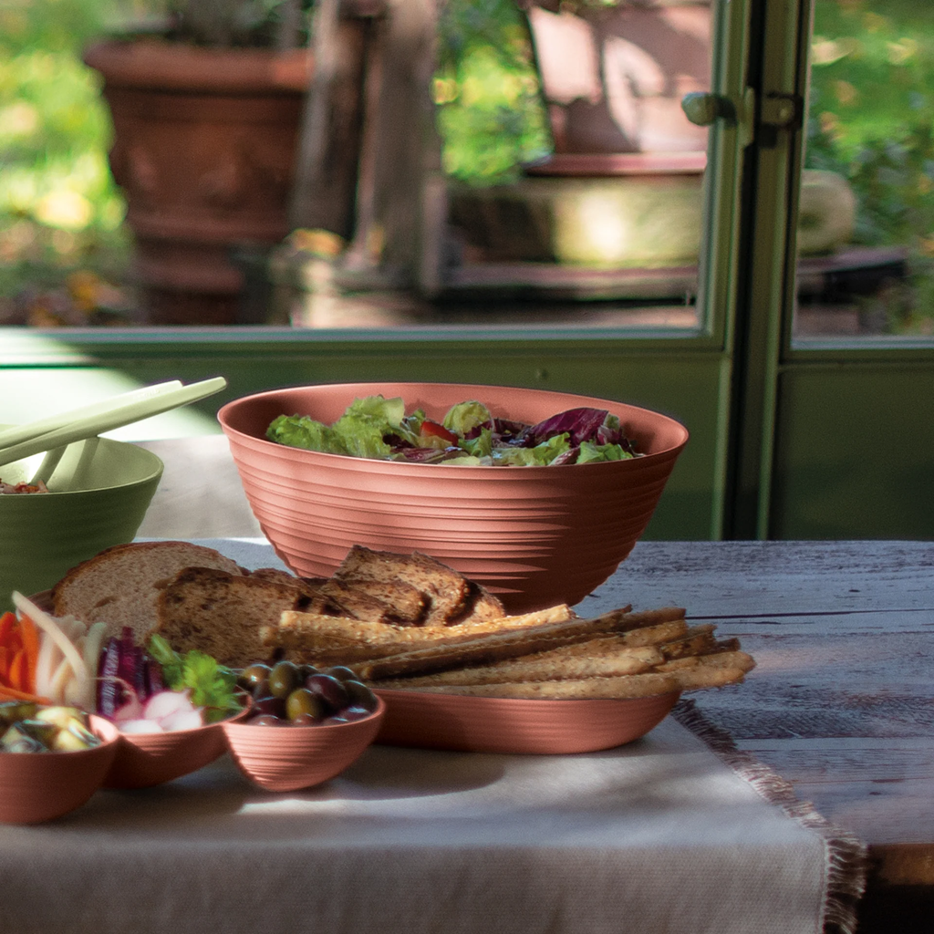 "TIERRA" by Guzzini: All pieces of this unique series are reminiscent of hand-made tableware in their deliberately irregular design but are made from 100% recycled disposable bottles - environmentally friendly, sustainable and with unmistakable Italian elegance.