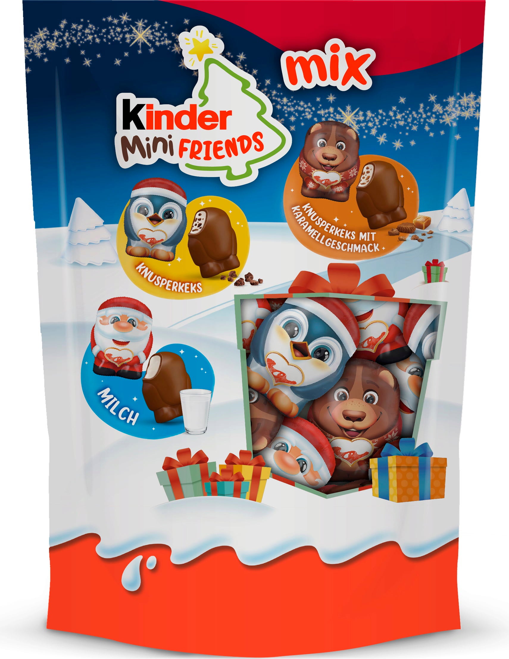 This assorted mix of individually wrapped Kinder Mini Friends comes in a festive pack featuring a cute, wintery design. Ideal as a gift or stocking stuffer.