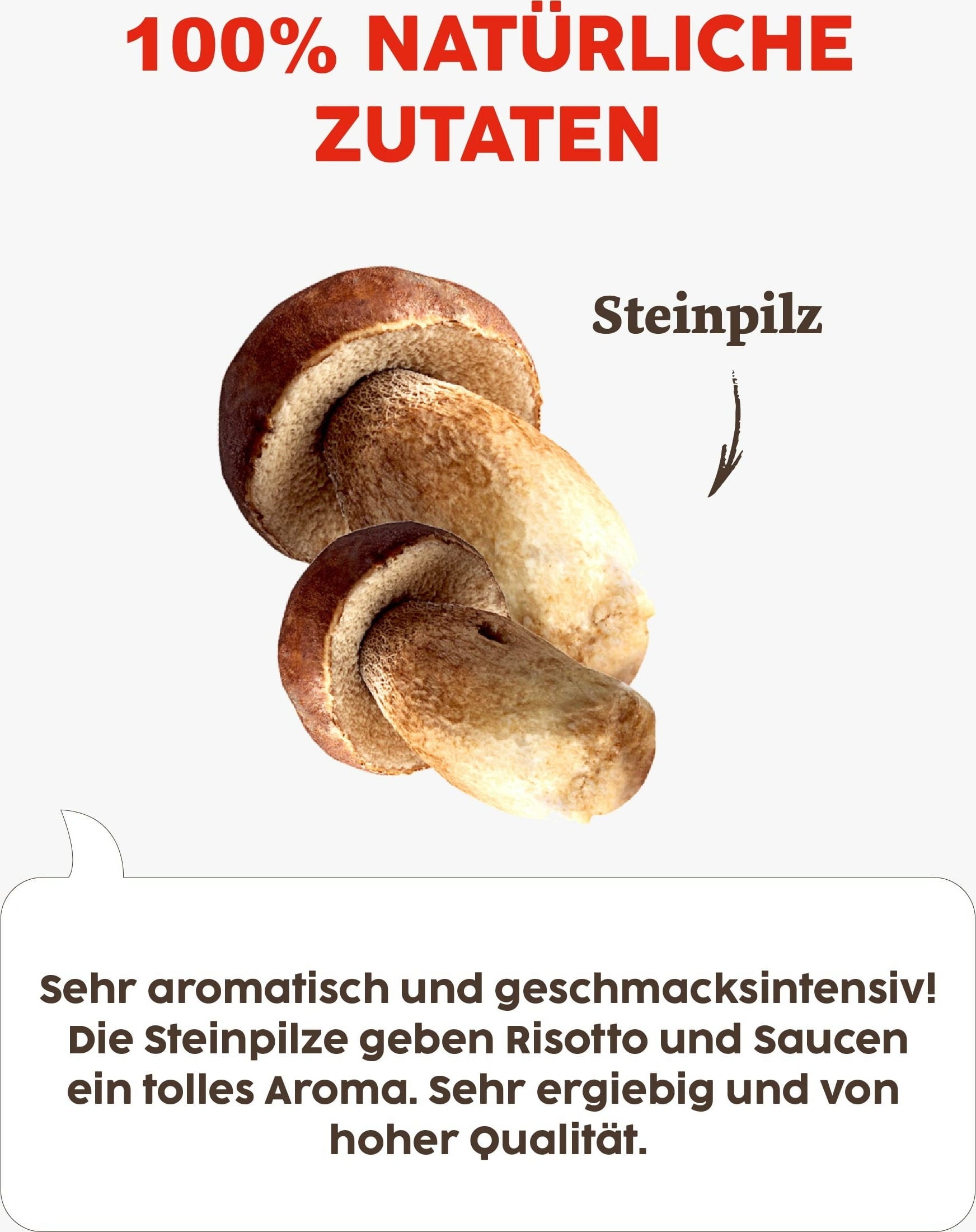 Porcini mushrooms, with their characteristically mild and nutty aroma, taste wonderful in pasta sauces, risotto, sauces, soups and ragouts. Carefully dried to preserve the flavours.