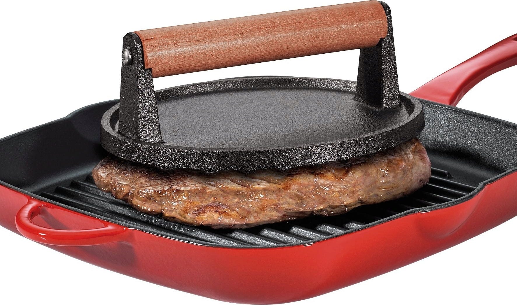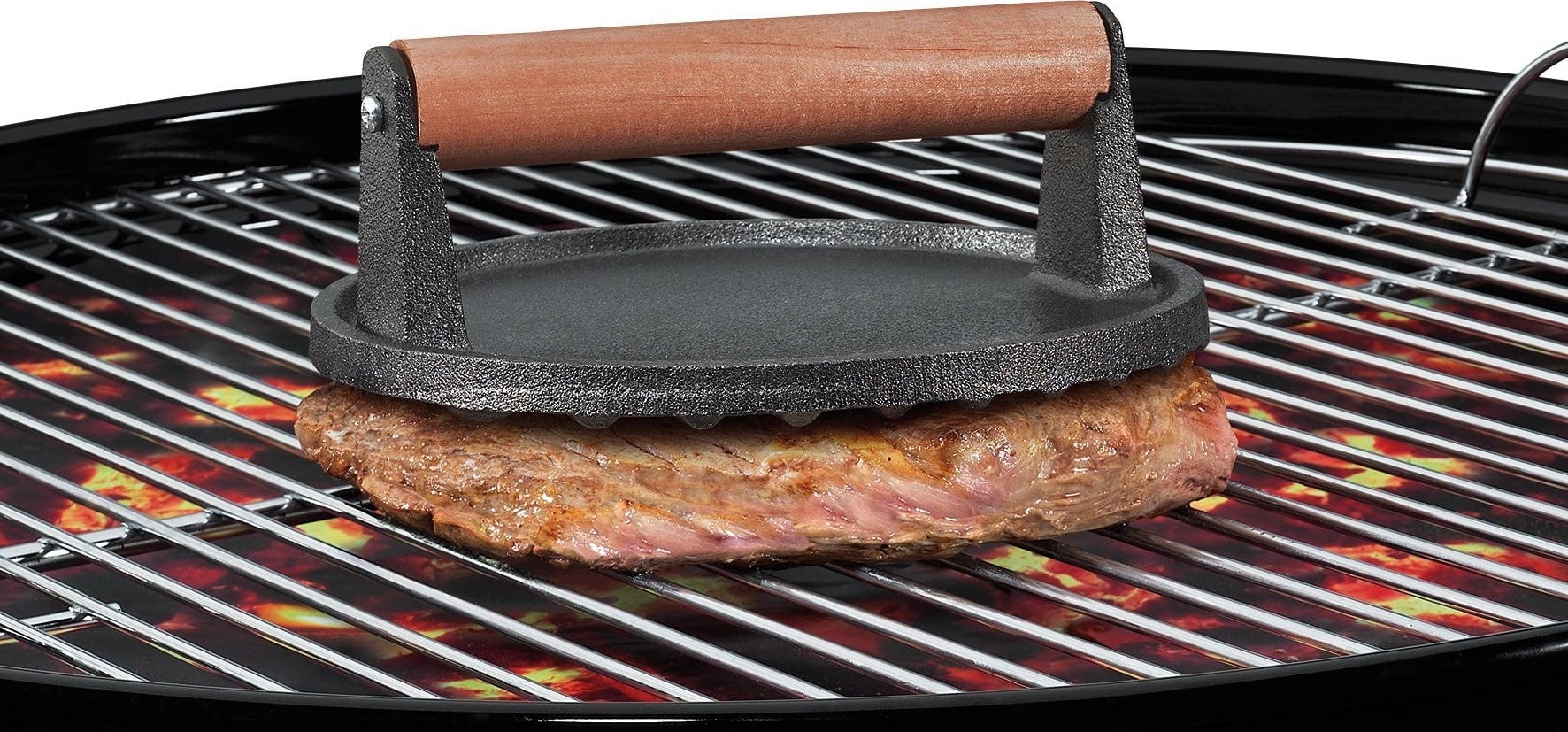 Perfect for all barbecue and burger fans. The BBQ meat weight ensures even and quick cooking on the barbecue or in the pan. Even XXL fillets can be cooked evenly, thanks to the weight of approximately 1.2 kg.