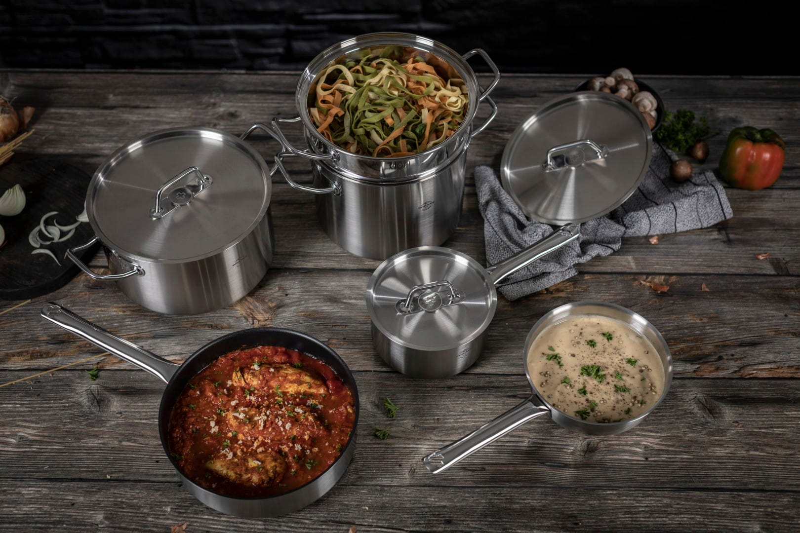 The induction-compatible MONTREUX cookware series features a simple, stylish design as well as a complex and innovative manufacturing process that ensures perfect cooking and frying results. A long-lasting and reliable kitchen accessory for everyday use that adds to the joy of cooking and dining.
