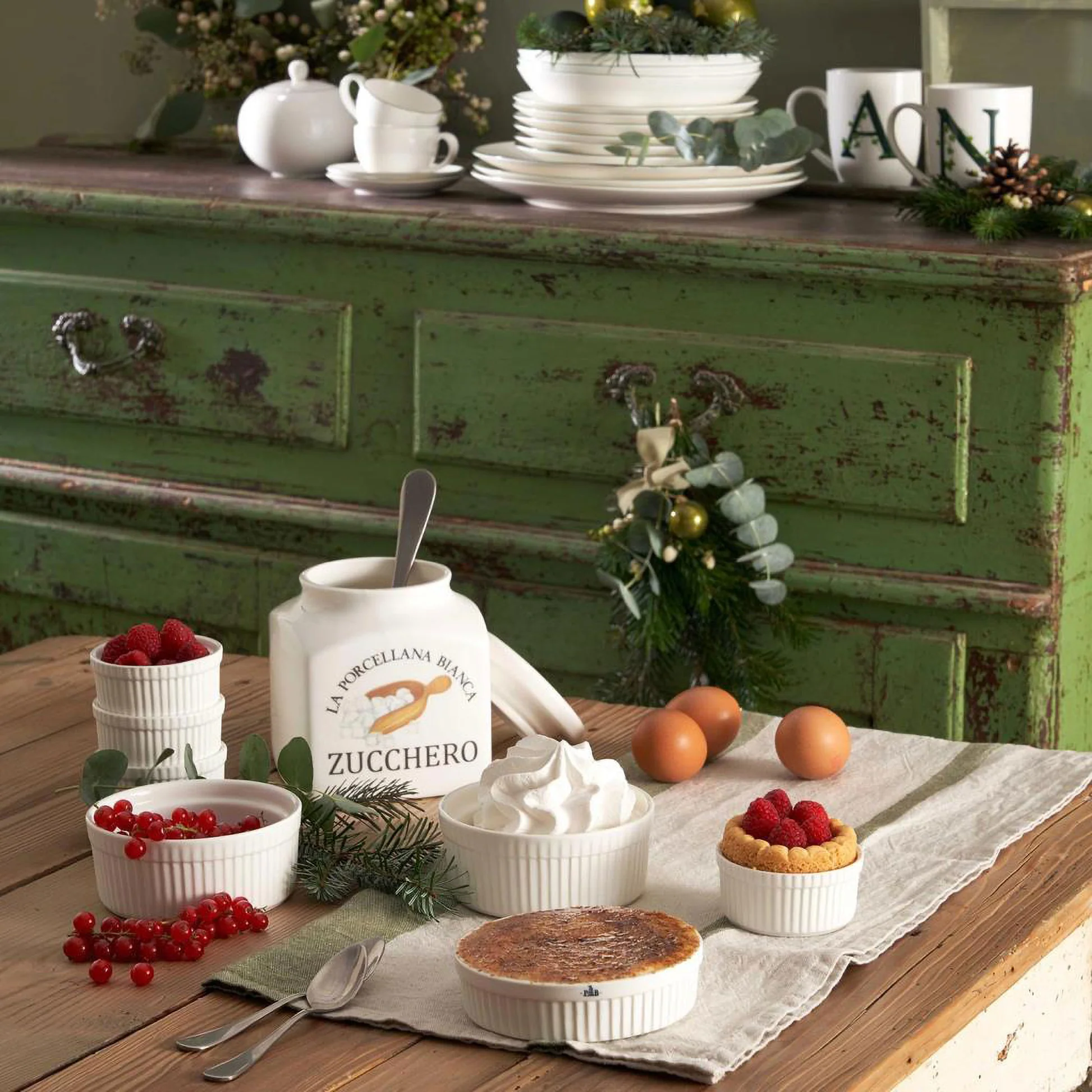 Finest ceramics and a beautiful country house design: the airtight sugar bowl is not only practical, but also extremely decorative. A highlight for any kitchen and a great eye-catcher in combination with other storage jars by La Porcellana Bianca.