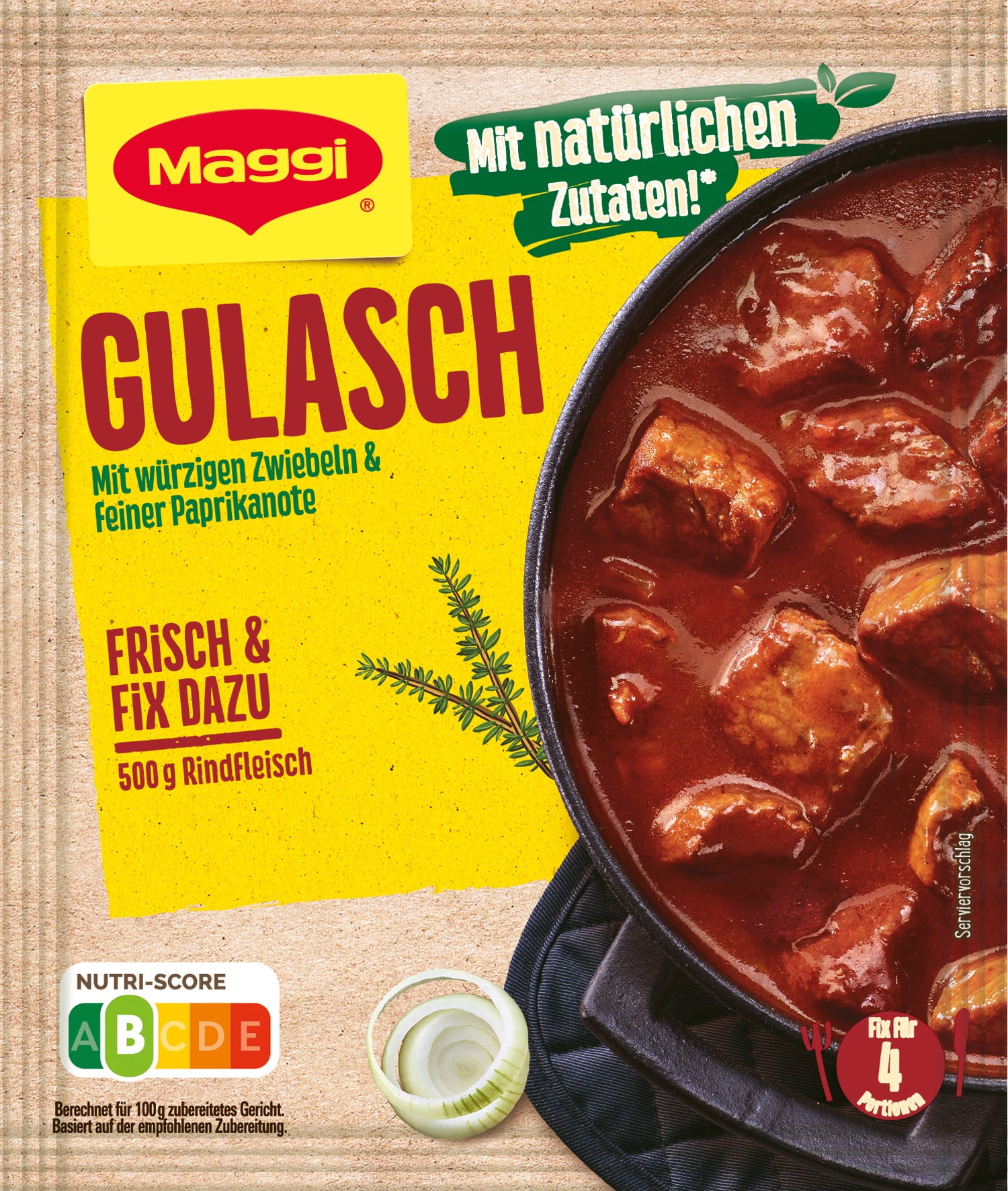 Goulash, a dish with a long tradition. And with Maggi Fix goulash seasoning mix, it'll turn out perfectly every time. Paprika, onion, garlic and caraway create the distinctive taste and ensure a truly satisfying meal.