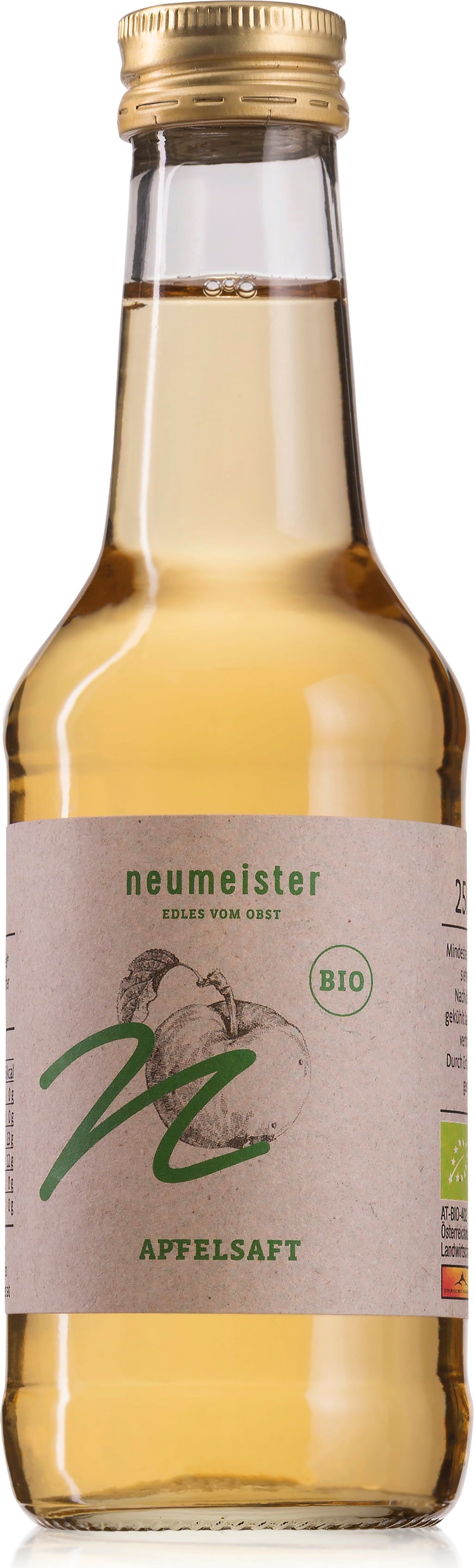 This clear organic apple juice is a classic cuvée of several varieties. The round, full-bodied taste and pleasant sweetness with refreshing acidity make it ideal as a thirst quencher. 100% fruit juice.