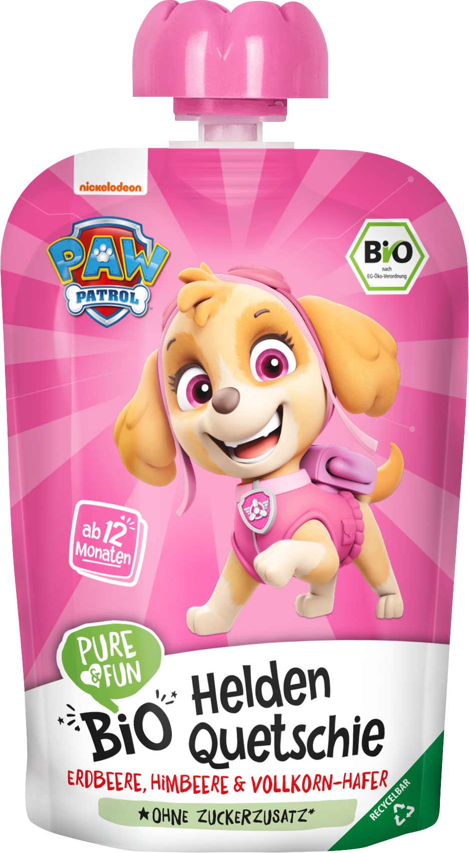When little energy boosts are needed, the PAW Patrol organic fruit snack with strawberry, raspberry, and whole grain oats provides a fruity power boost! Ideal for little heroes who like to have a tasty snack at hand. Perfect for kindergarten or exciting excursions - 100% organic and with no added sugar.
