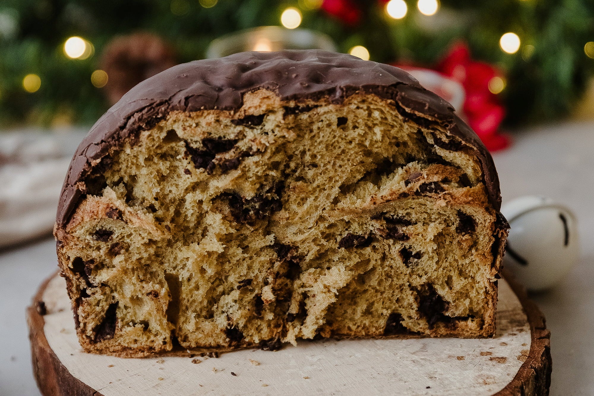 This vegan panettone is a delicious twist on the traditional panettone, a culinary jewel from Italy's treasure trove of delicacies. The light and airy sourdough cake is refined with chocolate cream and covered with a delicious chocolate glaze - the perfect treat to round out your festive Christmas meal!