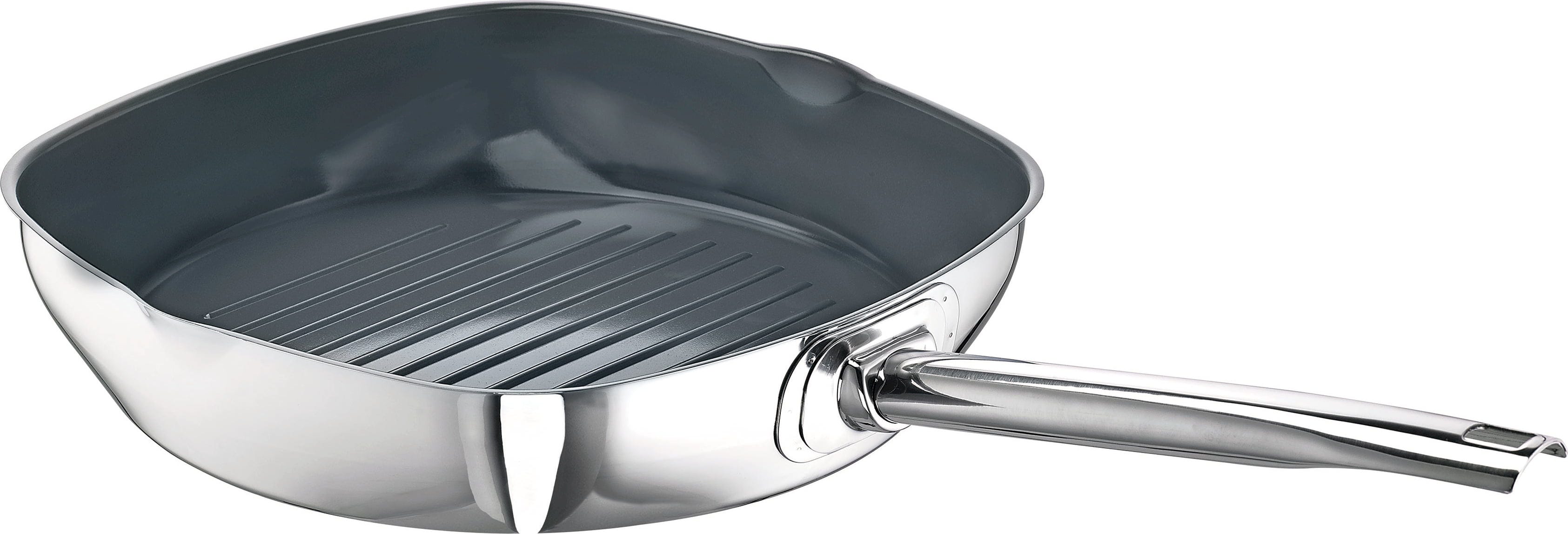 The stainless steel grill pan from the sustainably produced Greenlife series by cookware specialist Schulte-Ufer is the ideal pan for low-fat, crispy and healthy roasting and grilling. The high-quality materials and outstanding workmanship ensure excellent grilling results and ease of use.