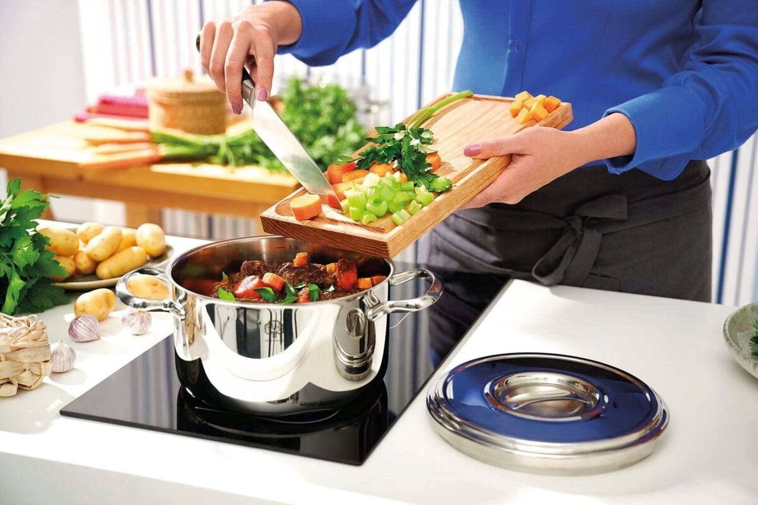 Whether it's a glass ceramic hob or an induction stove top, this high-quality stainless steel stock pot always ensures the best results and will bring you many years of joy. The protherm® copper bottom helps save energy while cooking.