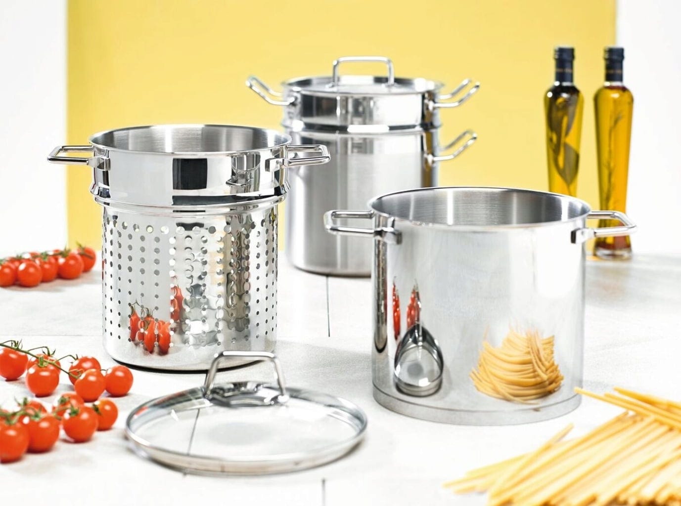 Spaghetti with your favourite sauce is always a great idea for a meal! And cooking spaghetti in the Wega Spaghetti Pot is easy and mess-free because there is no risk that boiling water will spill over while cooking. The special insert makes the rising foam collapse before it can spill over the edge of the pot.