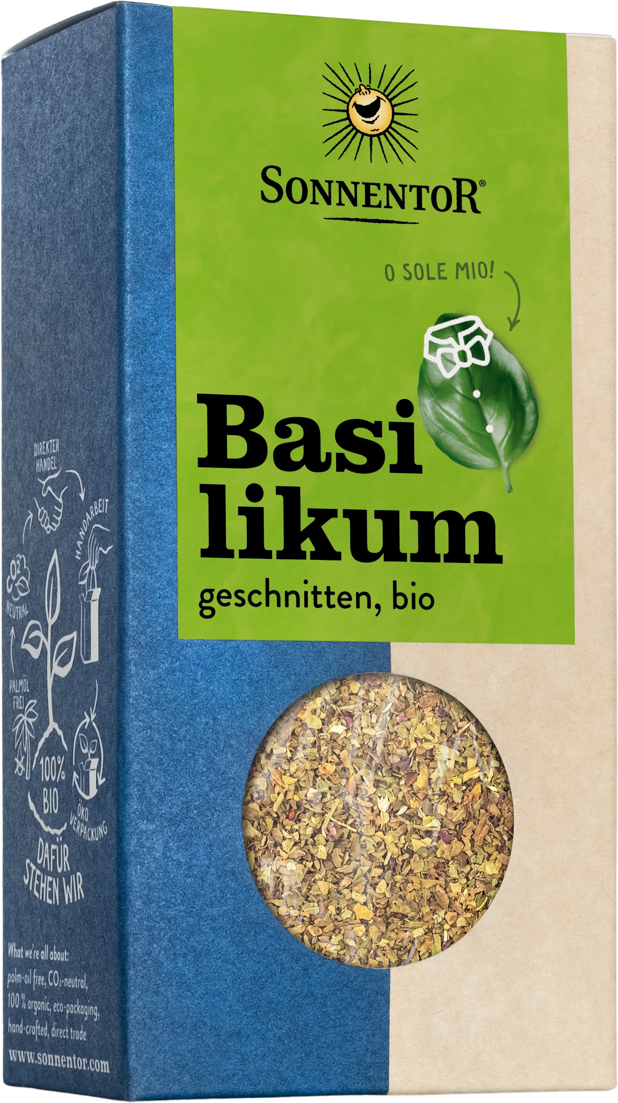 The flavor and scent of basil awakens the longing of the South. This is however not unfounded - basil is a constant companion of tomatoes, insalatas and pestos. It also perfectly suits pasta dishes, fish and seafood as well as flavorful pizzas. Tip: add to dishes shortly before serving as basil loses some of its flavor when added during the cooking process.