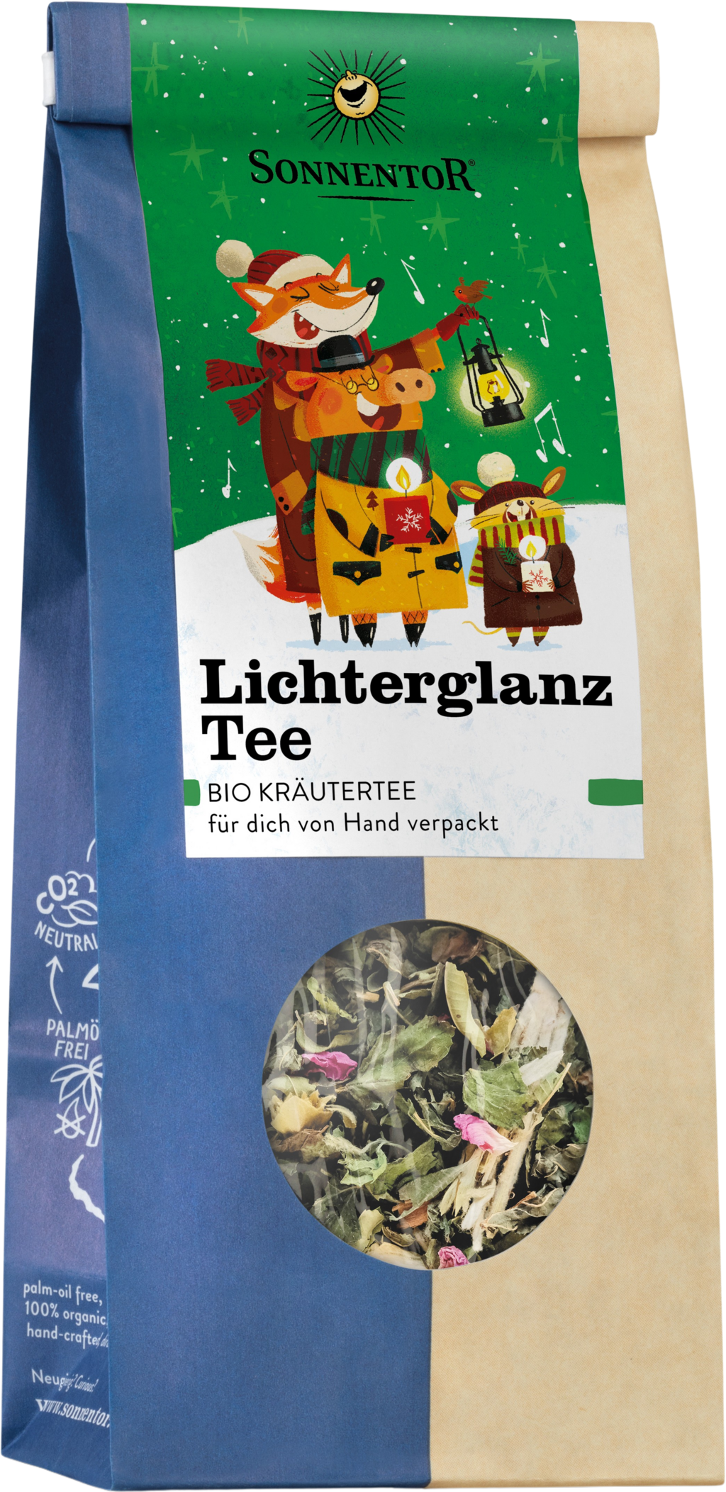 Sonnentor's Organic Sparkling Lights tea blend is the perfect tea for cold days during the Advent season. It contains tangy lemon balm and verbena, velvety Ceylon cinnamon, intense star anise, gentle vanilla, aromatic mountain tea from Greece, delicate rose petals and orange peel for a mild, fruity note.