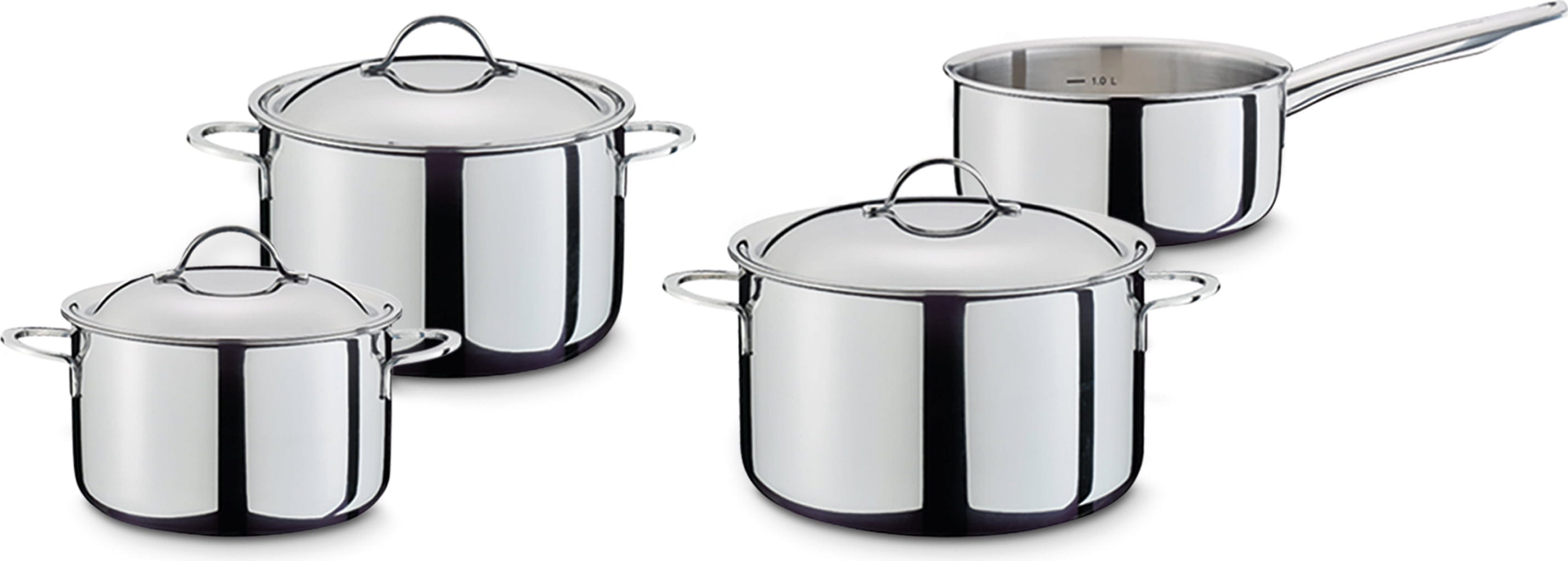 Thanks to the highly polished stainless steel and the low weight, the pots are also ideal as elegant serving dishes directly on the table. The specially sealed rim prevents corrosion and guarantees lifelong durability. Whether pouring with pinpoint accuracy without spilling or cooking with little water thanks to the precisely fitting lids, this set is the perfect combination of tradition and modern functionality.