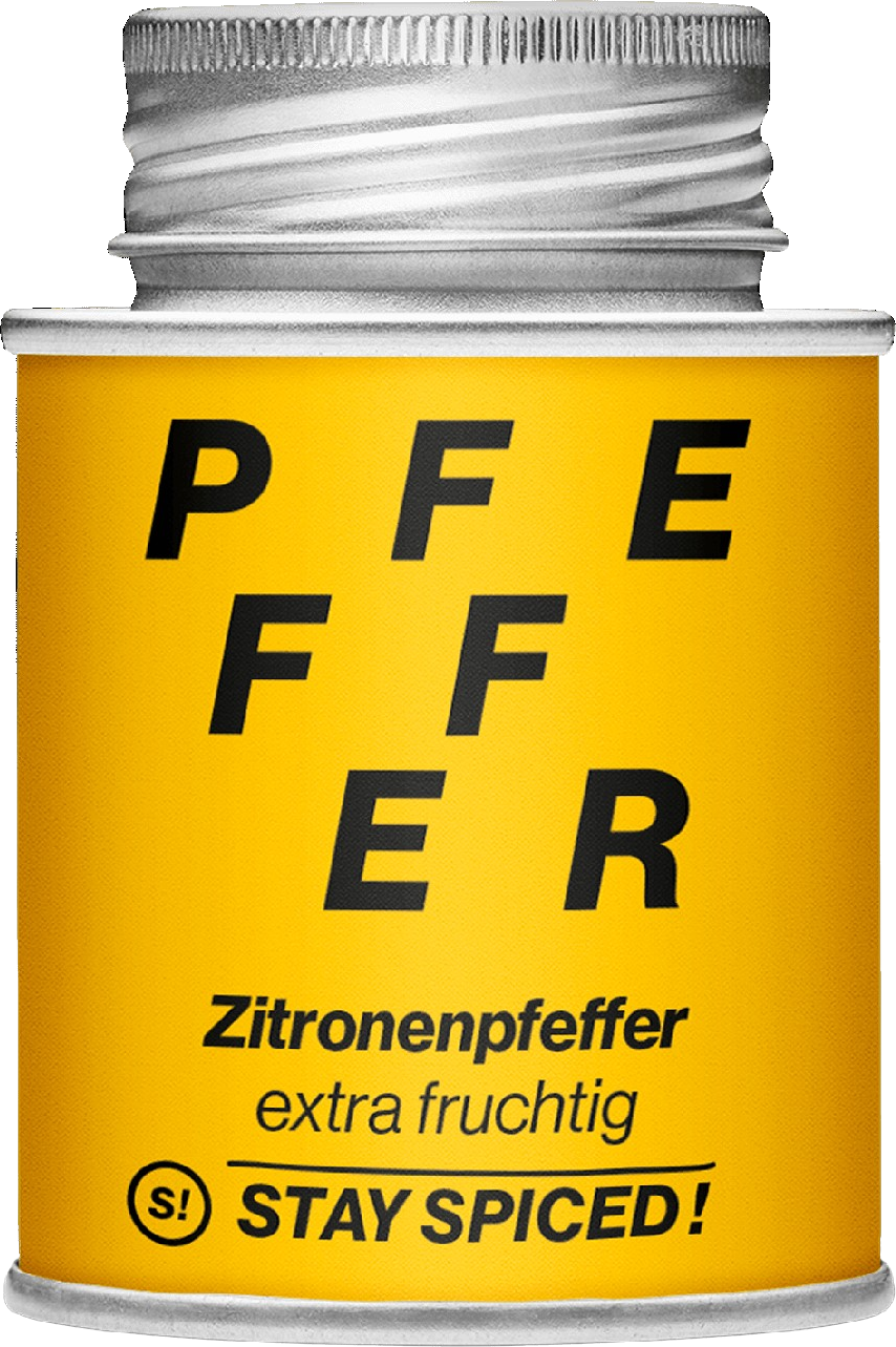 The Extra Fruity Lemon Pepper "extra fruity" by Stay Spiced! is a crushed pepper mixture that gives your dishes a summery, lemon-fresh pepper note. The sunny yellow turmeric not only gives the lemon pepper colour, but also adds its earthy, slightly bitter aroma to the mixture.