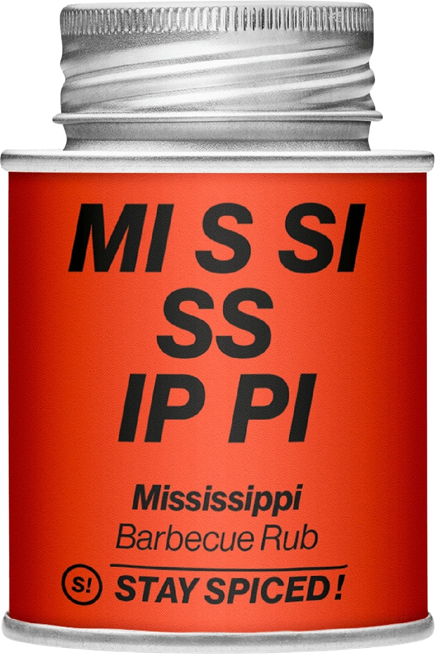 Stay Spiced! presents Mississippi Barbecue Rub featuring the great flavours of the American South. In addition to the above-mentioned classic spices, the mix also contains Bengali long pepper, paprika and Demerara raw cane sugar.