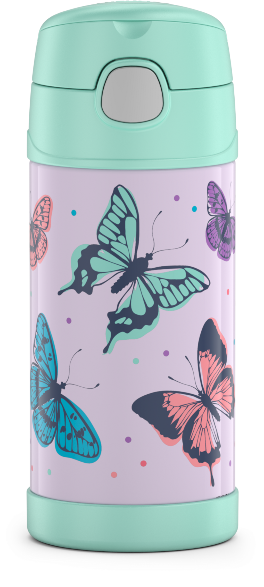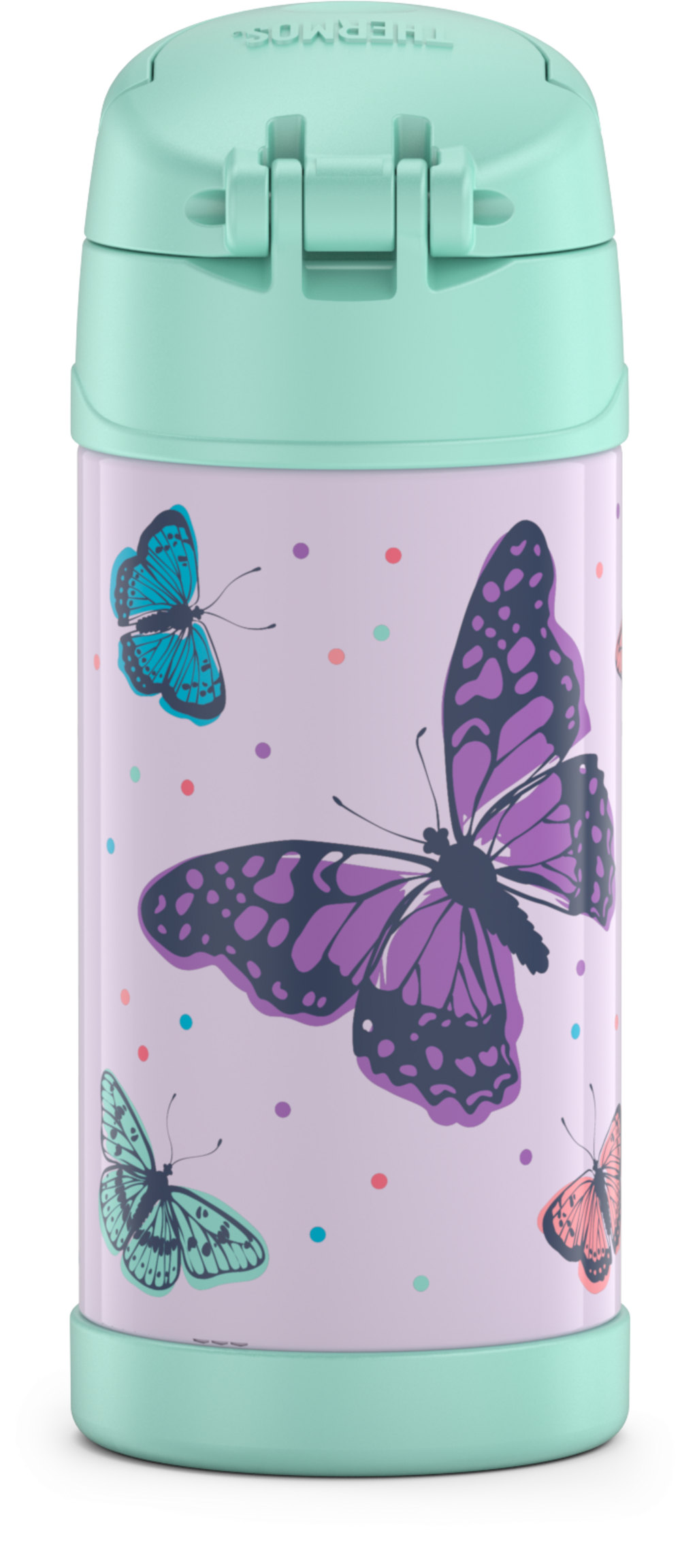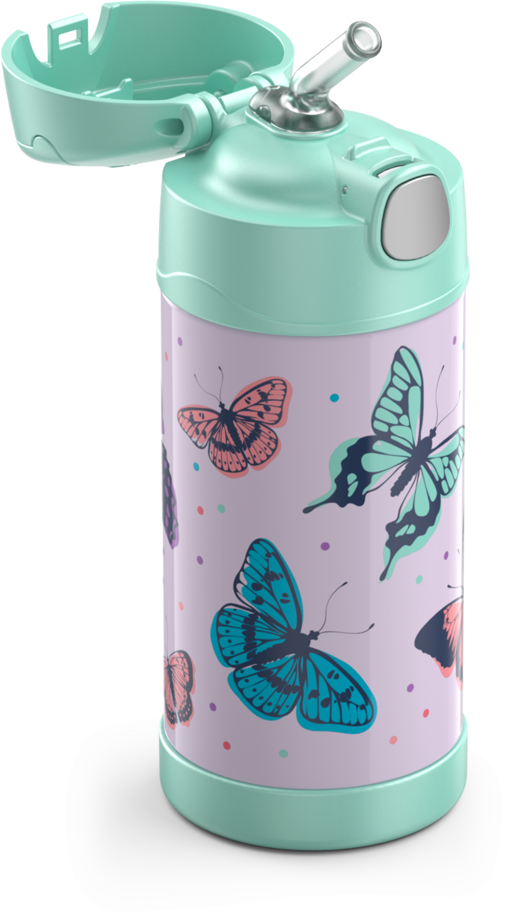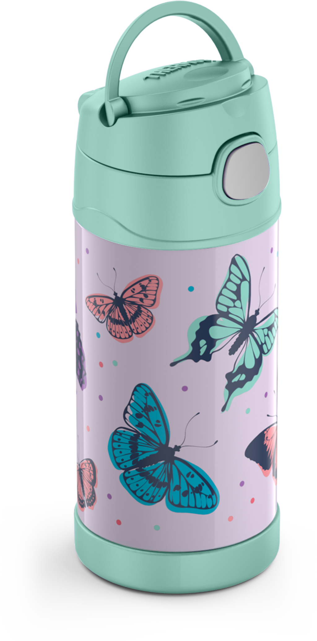 Perfect for little explorers! This insulated bottle has been specially designed for children's little hands and comes in cool designs and fun colours. Practical and clever details such as the silicone straw and the fold-out handle in the kid make the FUNTAINER drink bottle by Thermos the perfect accessory for everyday use.