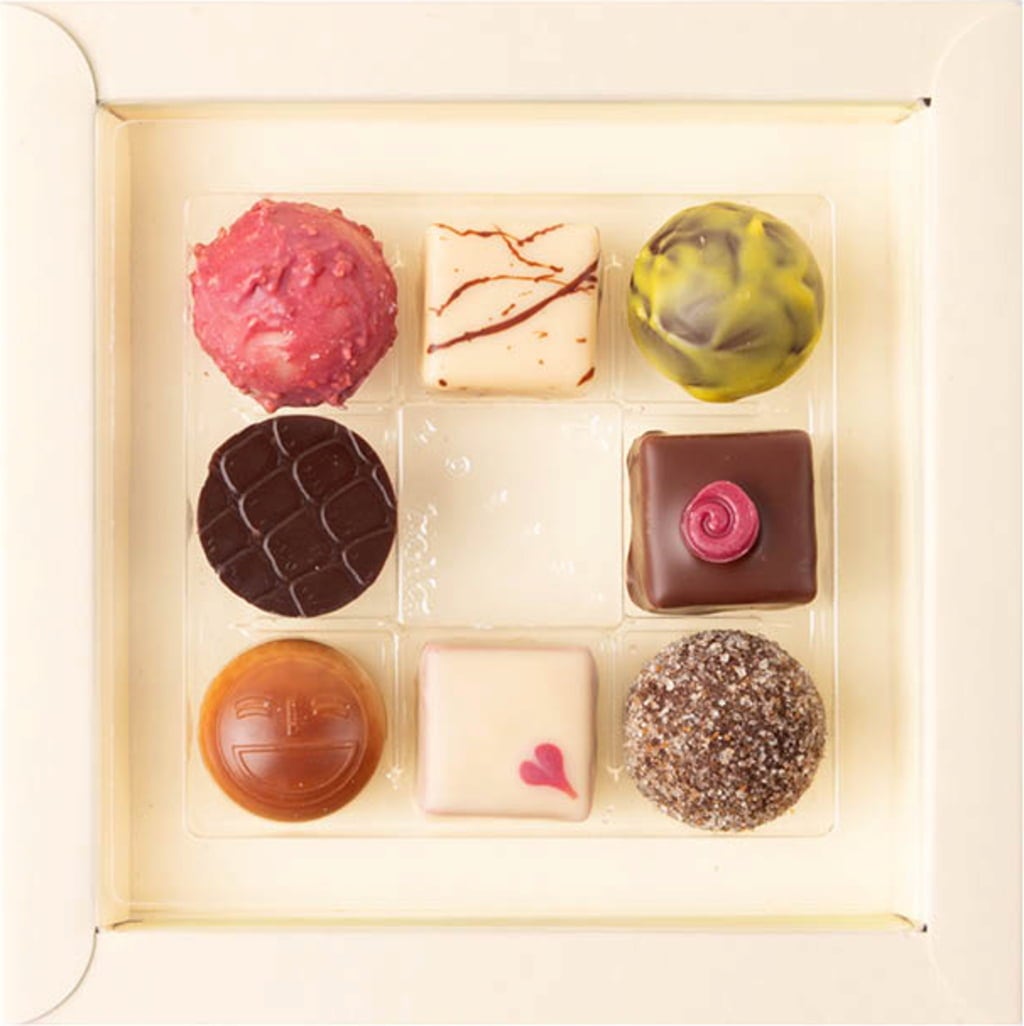 A classic gift that you can't go wrong with! The beautiful chocolate box is filled with 8 fine handmade pralines.