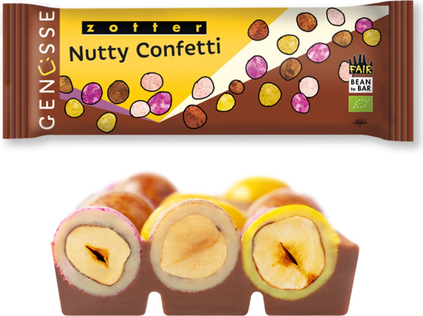 English reviews written for Zotter Chocolate Choccy Vibes Nutty Confetti